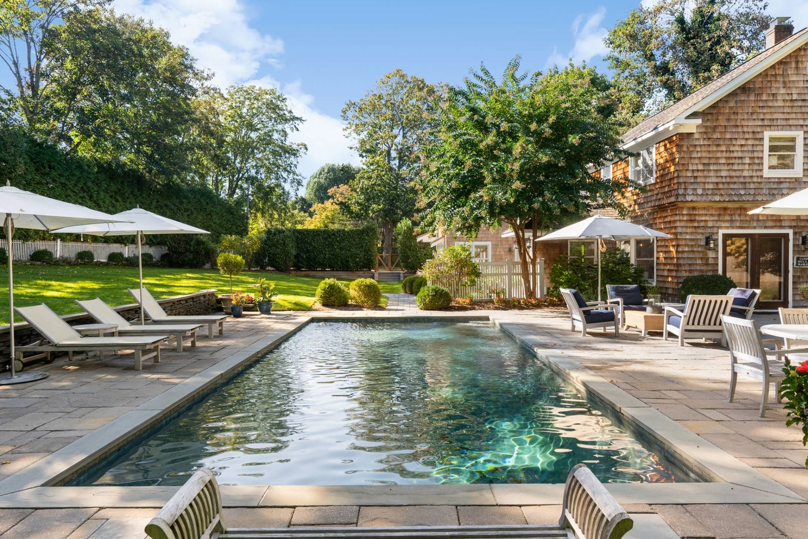 South-of-the-highway in Bridgehampton not far from both the Village and the ocean beach, this charming four bedroom, maids room/study with day bed, three and one-half bath home has central air, a newly renovated kitchen, master bedroom with large deck. The fenced in secluded yard has lovely landscaping, and a heated pool surrounded by a classic patio. Great house for year round living and entertaining.