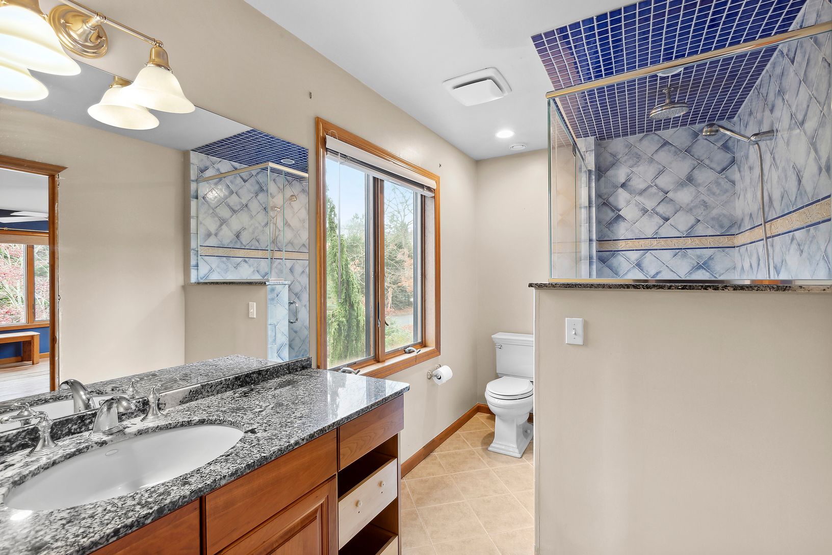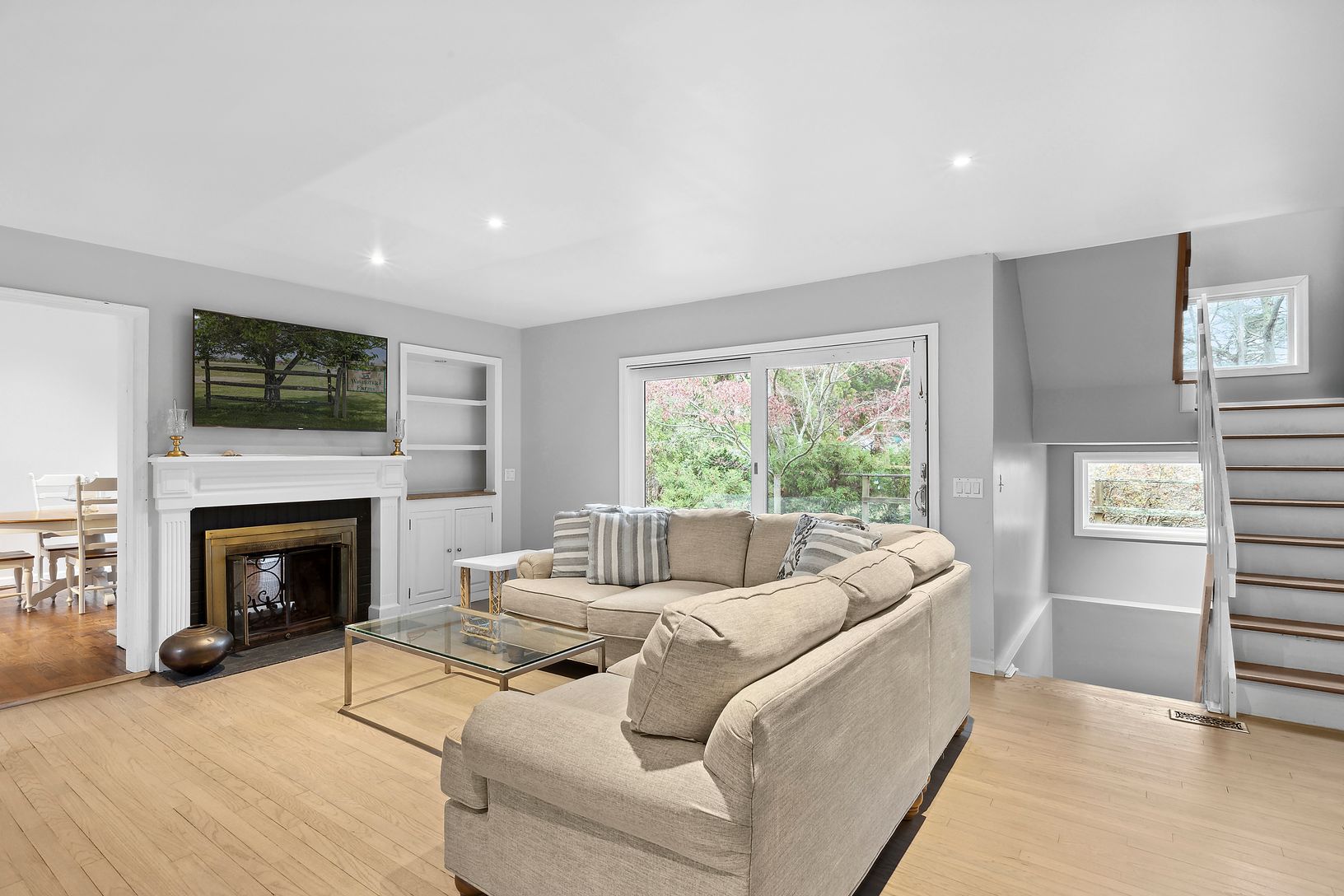 Located a few miles north of Southampton Village, Big Fresh Pond stands as one of the hidden treasures of Southampton. Nestled adjacent to the scenic Peconic Land Trust preserve, this four-bedroom, four-bathroom home epitomizes tranquility. The first floor welcomes you with a family room adorned with a wood-burning fireplace, a dining room, and a kitchen featuring custom cabinetry and granite countertops. Two guest bedrooms, sharing a full bat