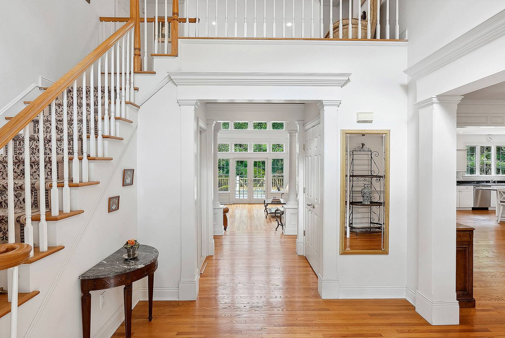 Set on a very private 2.18+/- parklike gated acres, this grand and stately post-modern features 4 large bedrooms (with 2 additional bonus rooms) and 4.5 baths across an expansive 4200+/- sf. The floor plan is easy to love as you embrace the seamless flow of indoor and outdoor living from the glorious front porch to the large deck off the kitchen, living room and primary suite. Upon entering the double-height foyer one is immediately drawn to t
