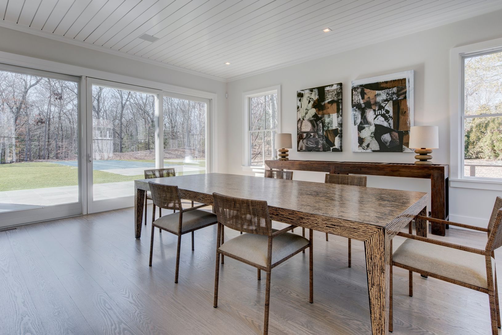 Newly completed home set on 2+ acres with winter ocean views, a southwest orientation and abutting a reserve. Situated on a cul de sac in Amagansett North this 5,600 Sq. ft. home is open plan living at its best. There is a huge living room with fireplace, professional kitchen with marble counter tops, family room, den and laundry/mud room.There are a total of seven bedrooms (including first and second floor masters); seven full baths and two h