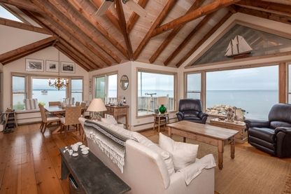 This Gem on Napeague Bay with rare existing bulkhead is a one of a kind. Situated on its own beach. House offers spectacular views from open living space in living, dining and the master bedroom. A deck off the dining room offers outdoor entertaining and dining with expansive views. Vaulted ceilings enhance the open space and natural light coming in through grand windows. En suite Master Bedroom overlooking the bay with fireplace. Two addition