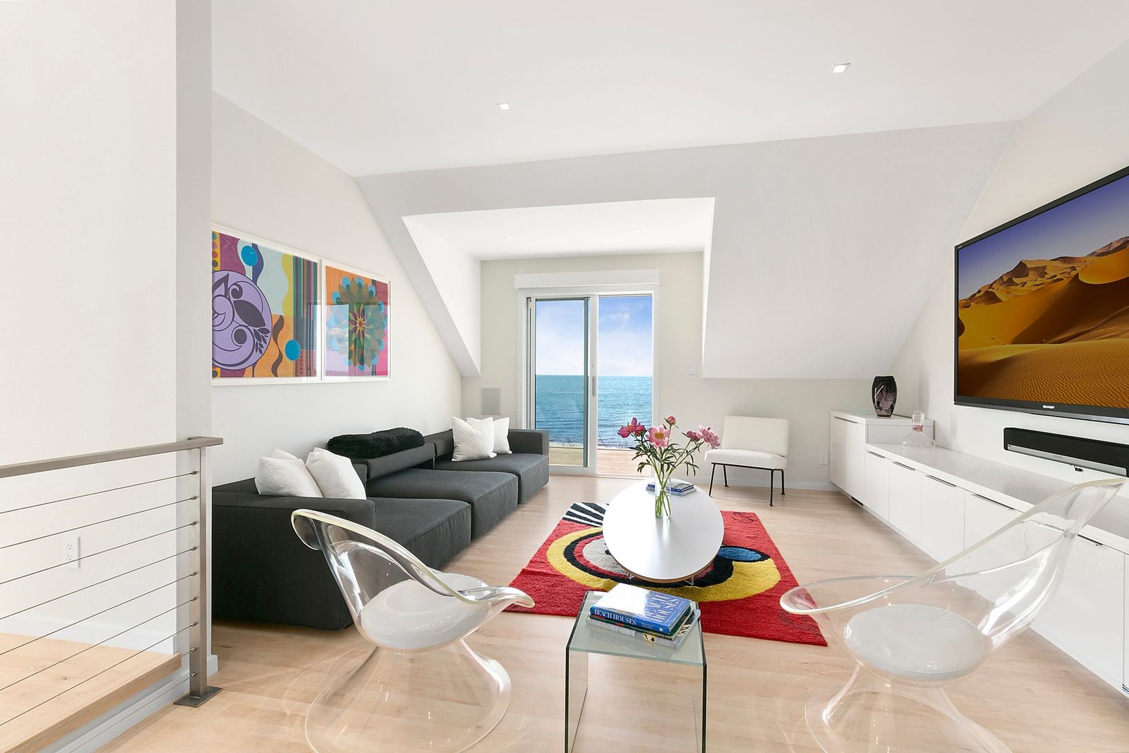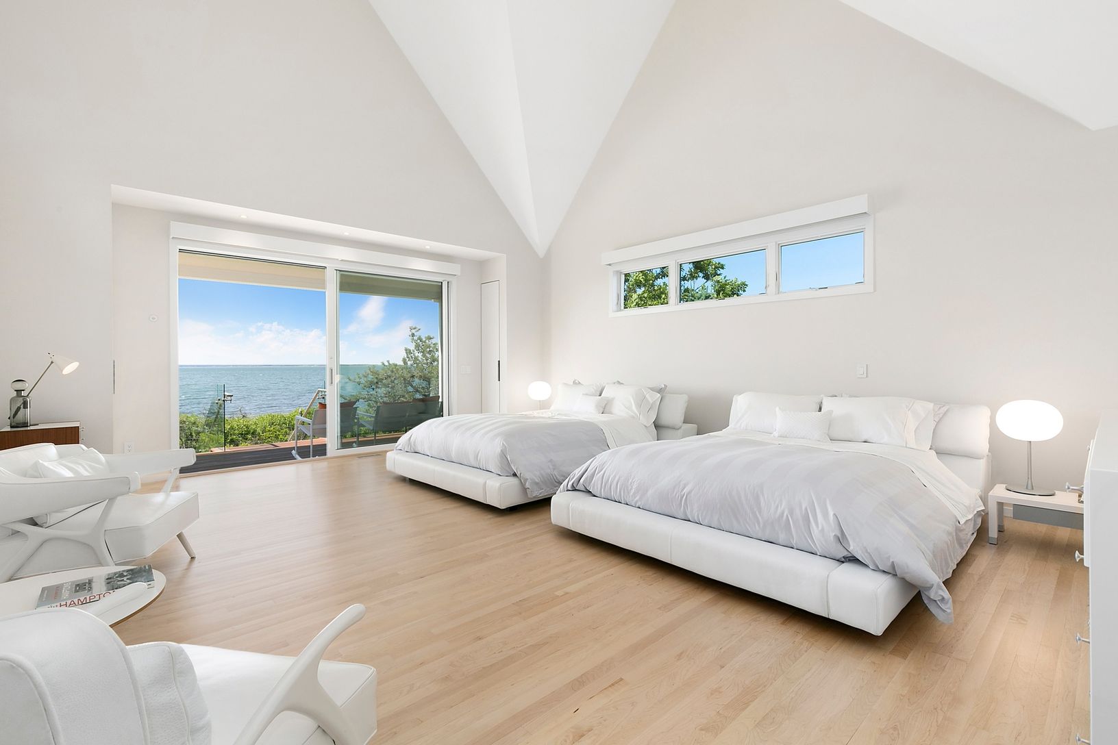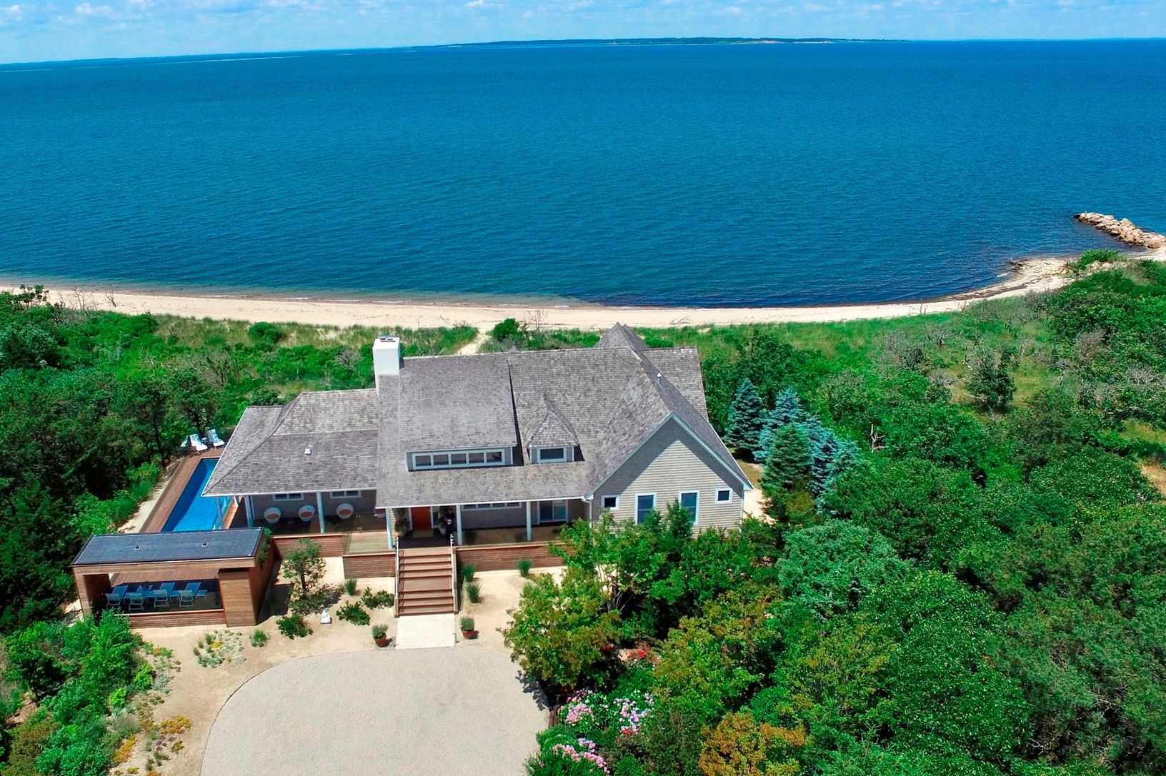 Unlike no other waterfront on the market today, this is a completely private, quiet paradise away from the usual Hamptons hubub. On 5.34 acres with 203' of beach frontage on Napeague Bay, this magnificent home is ideally sited to take full advantage of the spectacular year round sunsets and the unparalleled water views. Rather than the typical manicured lawn, the home co-exists beautifully with a natural landscape of sand, ornamental beach gr