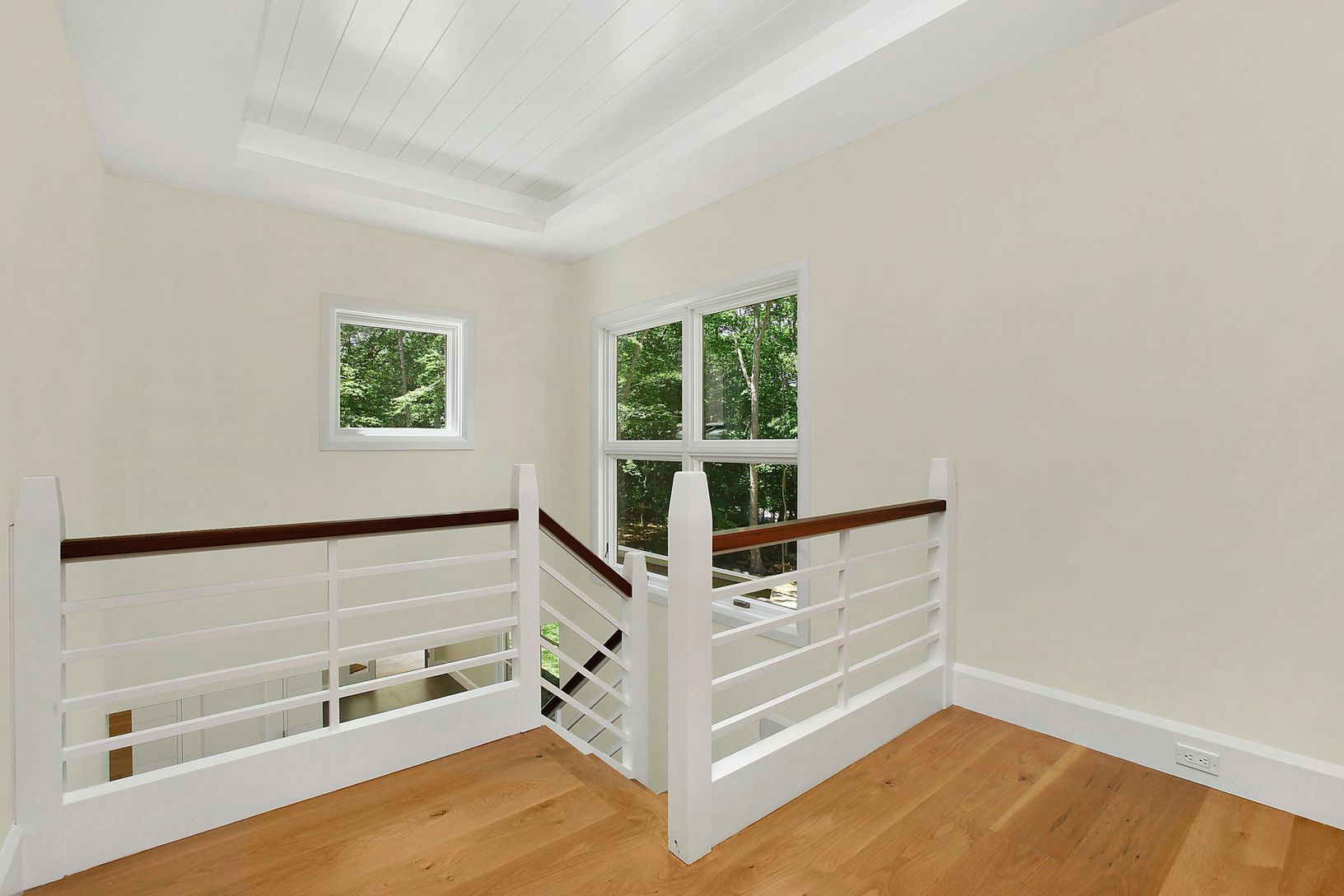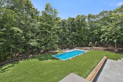 New construction. Thoughtful design by well known Hamptons architect German Barrios incorporates both the traditional and contemporary on a beautiful hilltop 1.8 acre lot surrounded by a beech forest and greenbelt. Exterior features a range of high quality materials: stucco, vertical cedar siding, cedar shingles, standing seam metal roof, and Marvin windows and sliders. Interior highlights: large entry hall with contemporary gray porcelain til