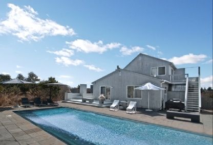 Four-bedroom, two-bath, spacious contemporary saltbox situated on a private half-acre +/- property with an 18' x 38' heated pool surrounded by a large custom deck. Wonderful entertainment areas with the dunes and beach grasses bordering the property. The light-filled house features a double-height living room with fireplace, dining area with table for 10 and spacious kitchen, central air-conditioning, and security system. Large enclosed outdo