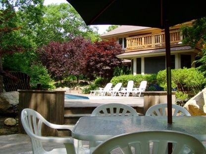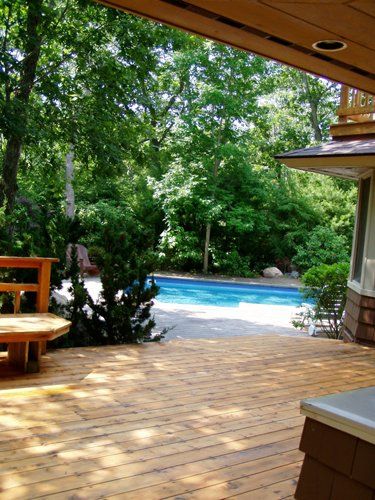 Rental Registration #: 16-1,653 Secluded on two landscaped acres, this award-winning house was designed in the style of Frank Lloyd Wright. Acclaimed for its comfort and style, the home offers four bedrooms and four baths, a living room with fireplace; gourmet kitchen, dining room and large screened porch with dining area. Outside, the tiered deck, well equipped for summer entertaining, overlooks the 50' heated swimming pool..