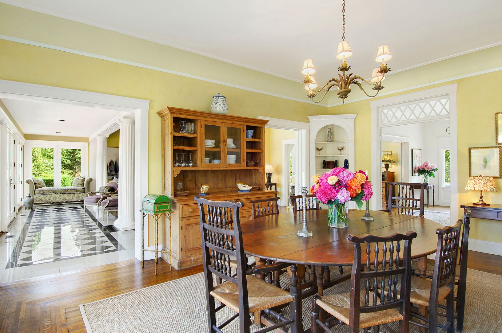 Built in 1910 by Devon Colony founder Richmond Levering, this historic home is located on more than five private acres far above sea-level on the Amagansett Highlands. The residence is one of five original homes in the Devon Colony, a historic enclave that includes the vacation residence of William Proctor of Proctor and Gamble. Full of original and undisturbed architectural detail, the living room features decorative columns, French doors an