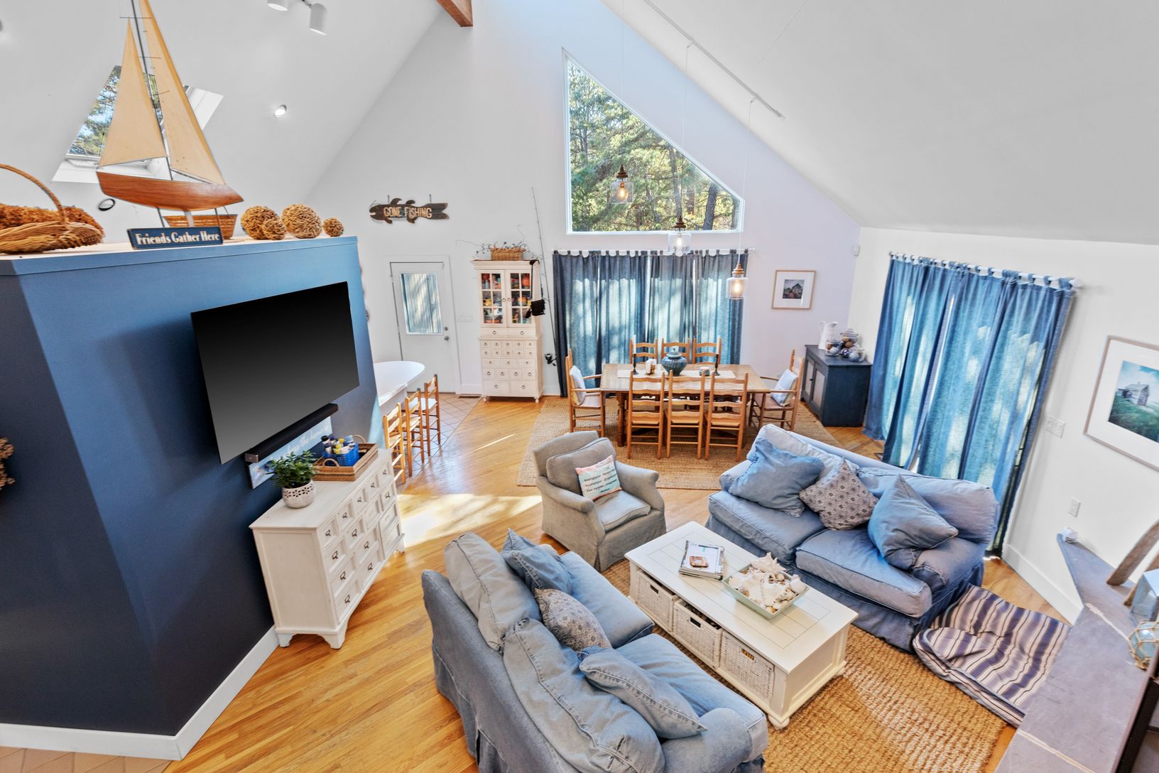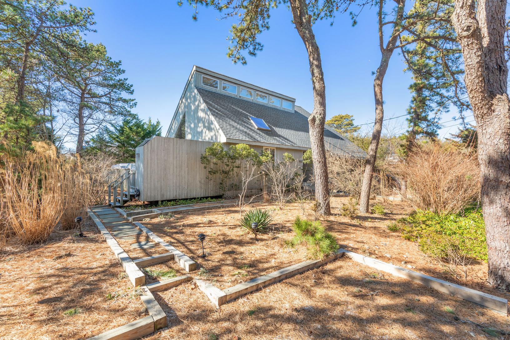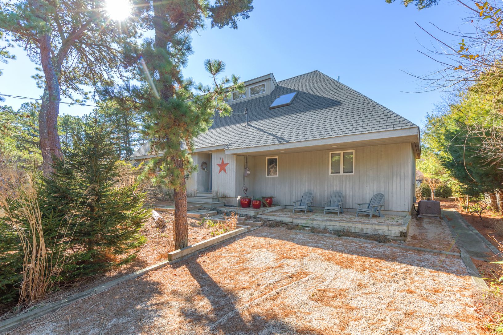 Spend Lazy Days in this great home. In the Dunes with the Ocean beach Oh so close. is this 4 bedrooms, 2 bath home with soaring ceilings and open floor plan and living room. Extensive decking envelopes the home and leads to the private backyard perfect for dining and entertaining. Private Master suite on second floor. A wonderful home to rent in a beautiful setting, just a skip to ocean.