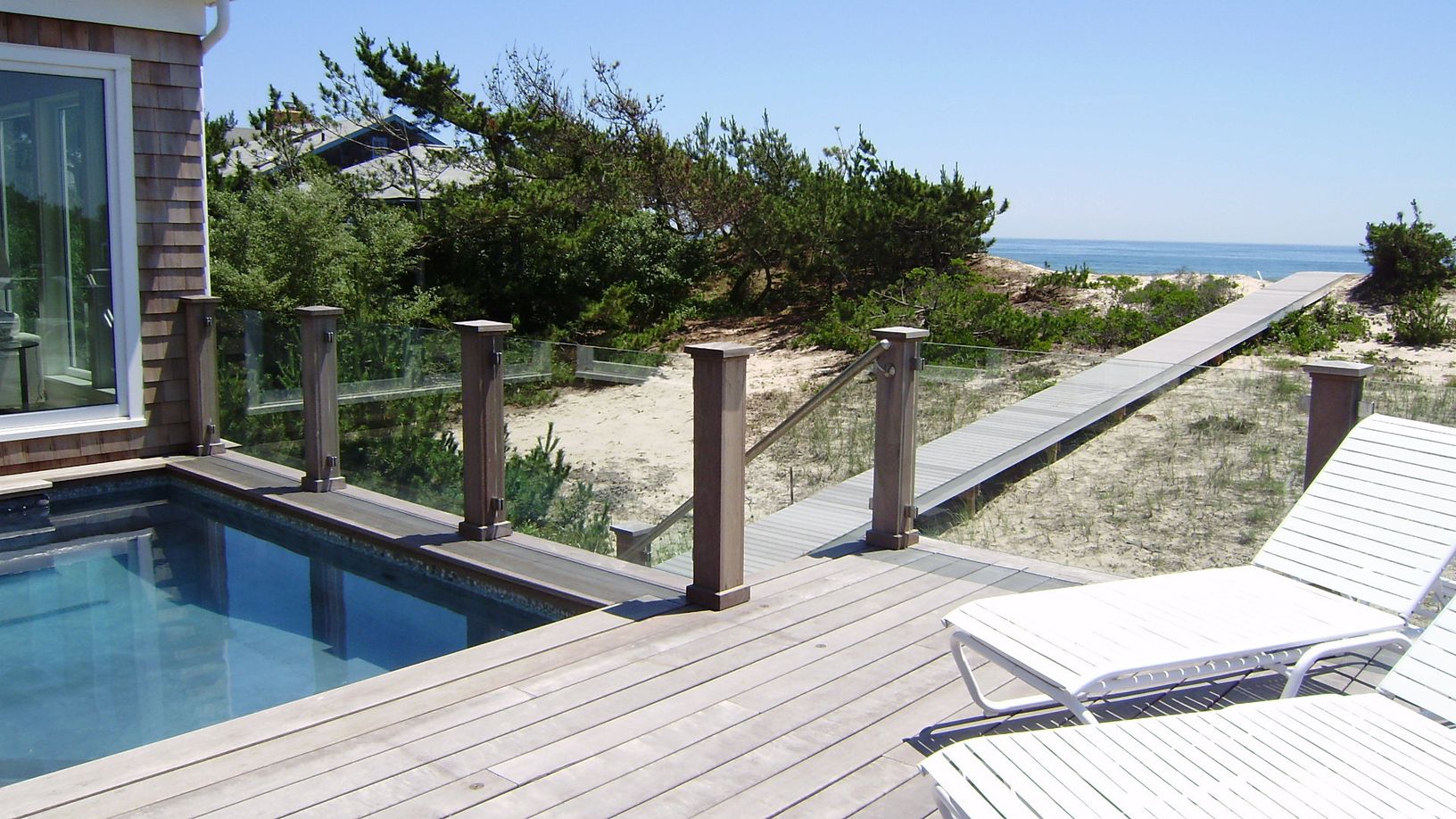 The Atlantic Ocean is the backdrop to this Hollenbeck & Smith designed 5 bedrooms (all suites), plus den with full bath, 6 baths with radiant heat just completed residence in the Dunes of Amagansett. Sit at your ocean-side pool with views through glass railings to the surf breaking along 100' of beach front accessed by a private walkway over the velvet sand and beach grass laced dunes. Five star energy rated, this newly offered oceanfront