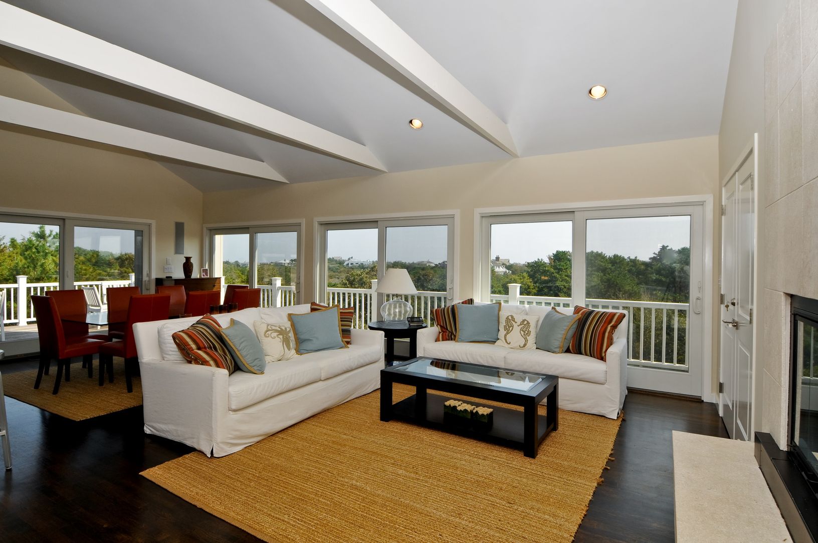 After a day at the beach, return via the community private duck-walk to your 2009 renovated, 3 story air-conditioned modern beach house, to either relax on the large balcony taking in the ocean & dunes views or splash around the heated pool. 4 bedrooms (2 masters), 4 1/2 baths plus a finished grade/pool level basement lounge with full bath and bonus room. Plus a garage & of course central air on .68 of an acre in a community with some
