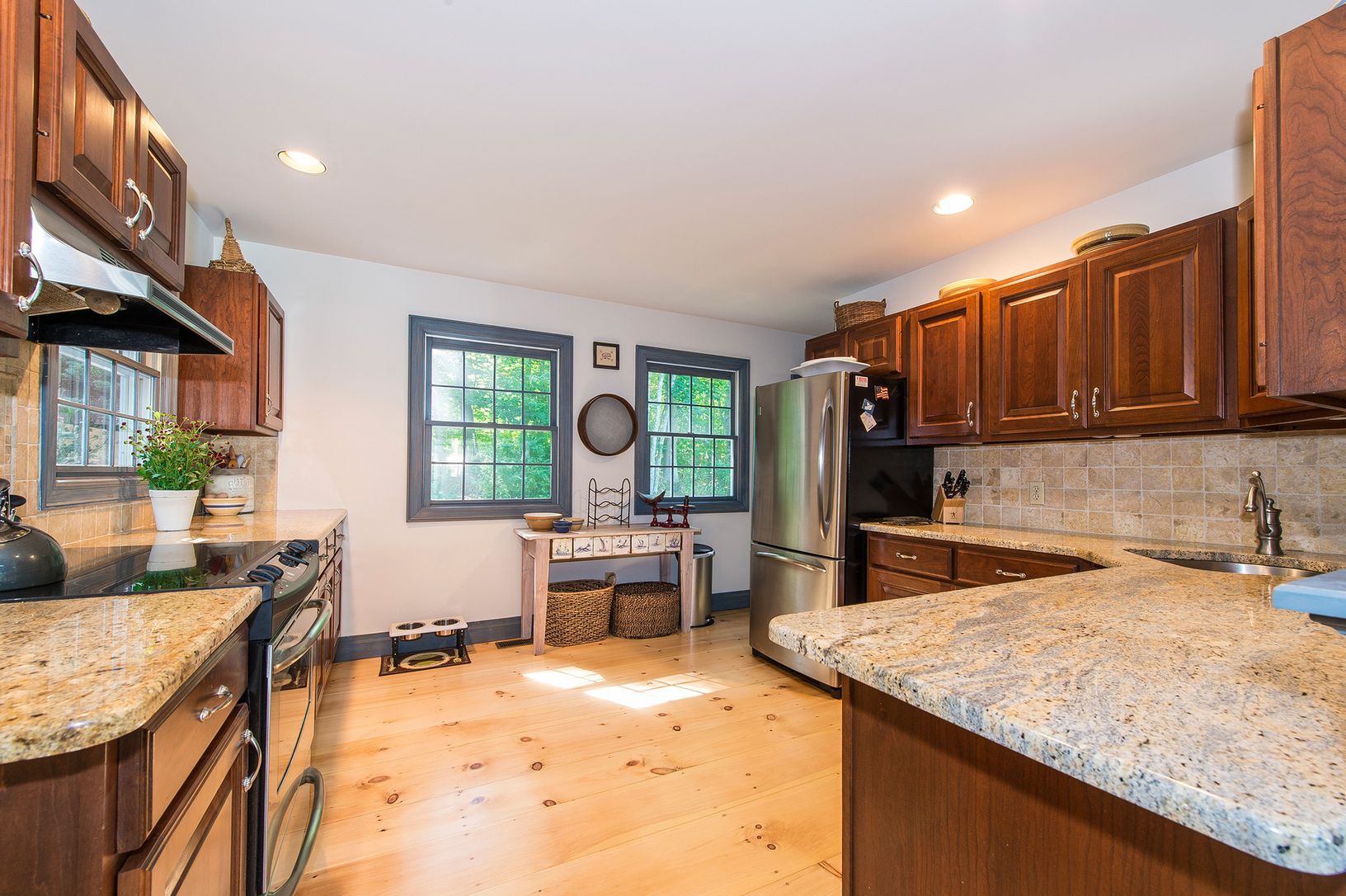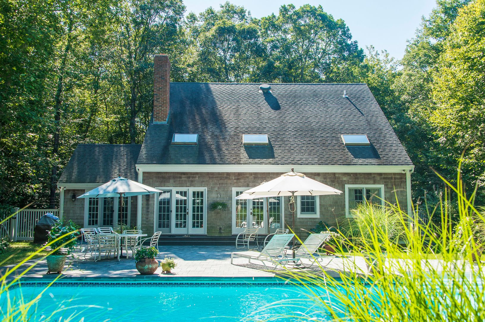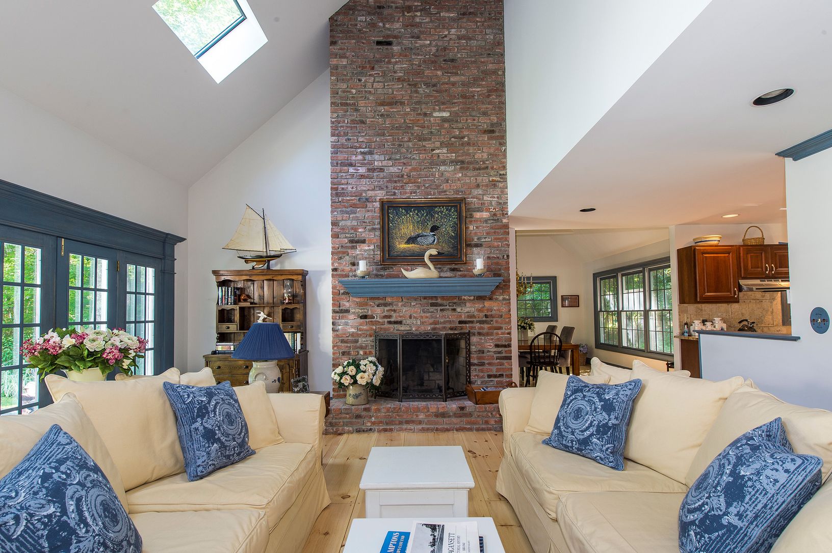 This two story traditional home built by master builder Jeffrey Colle sits on 2 acres . The interior living space is free flowing, with a cathedral ceiling, a 28 foot brick fireplace and random width pine flooring. There is extensive architectural detail throughout. The kitchen has been recently renovated, as have the bathrooms (with Carrera marble).A heated pool is surrounded by an extensive patio and established gardens. There is ample roo