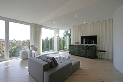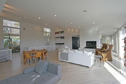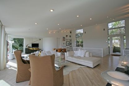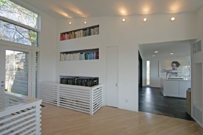 Sleek modernist 3,000+/- sf home sited high in Amagansett Dunes offering four bedrooms, four baths, open living room with fireplace, floor to ceiling windows giving to ample decks with spectacular views across the dunes to the ocean, custom Boffi kitchen, finished lower level opens to heated gunite pool, attached 2-car garage all on very private 0.6 +/- acre grounds pristinely landscaped with mature trees. Close to beach, shops and restaurant