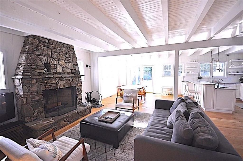 Beautiful 2013 construction in strolling distance to Amagansett Village, with everything that this historic hamlet has for you to enjoy. Just a bike ride to the pristine sandy ocean beaches of Amagansett. Your retreat welcomes you home to its airy main living space with open beamed ceilings, wide plank oak flooring, unique floor to ceiling fieldstone fireplace and all white, Carrara marble and stainless kitchen with Bertazzoni oven. First floo