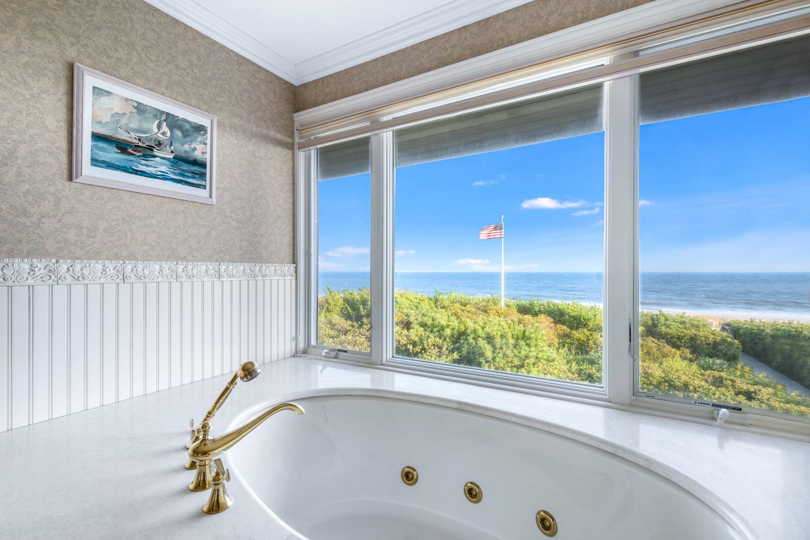 A spectacular oceanfront property with dramatic ocean views. This beautiful beach house offers an open living room and dining area with double-sided fireplace and walls of glass looking out to the deck and the ocean beyond. Adjacent to the dining is the spacious eat-in kitchen with bay window and Wolf and Sub-Zero appliances. There is also a large walk-in pantry. Additionally, there are two generous bedrooms with shared full bath on the main