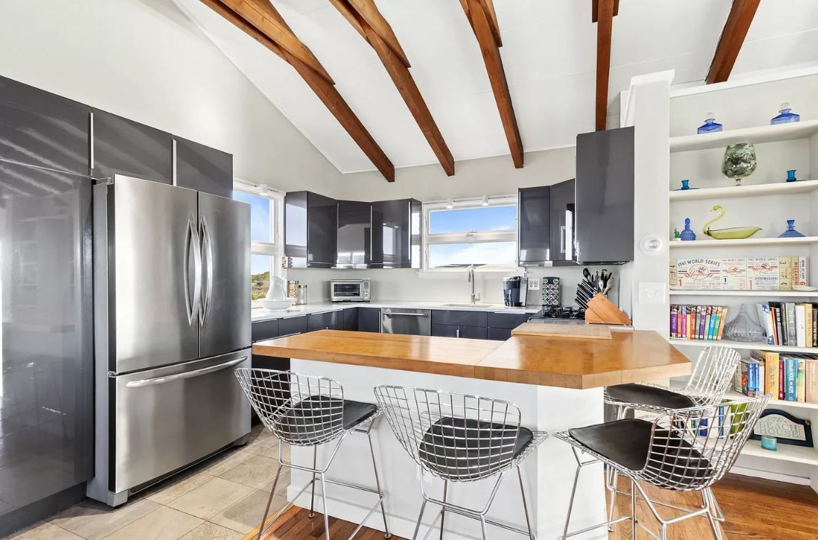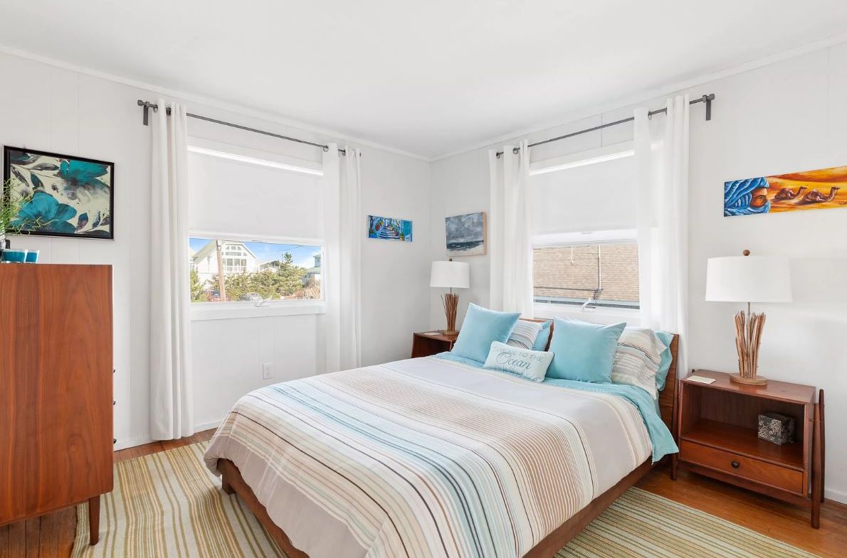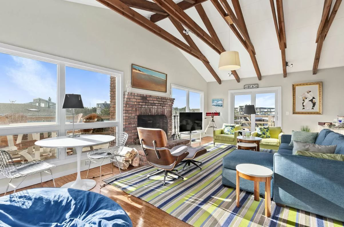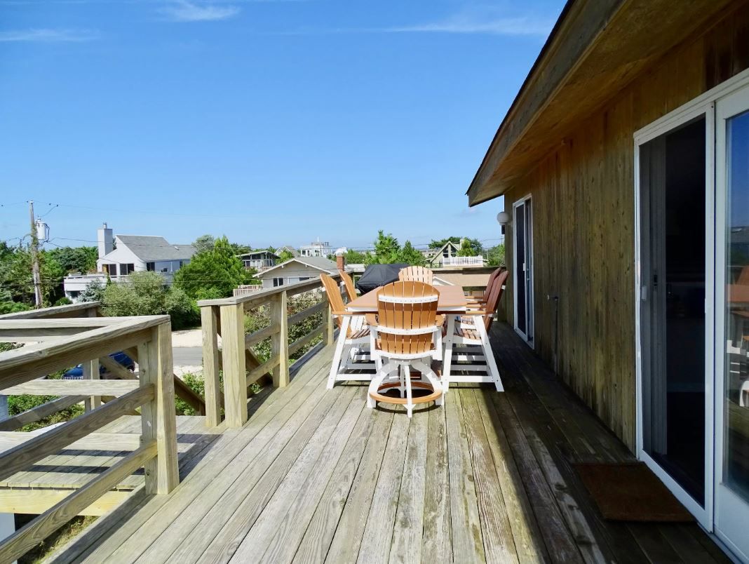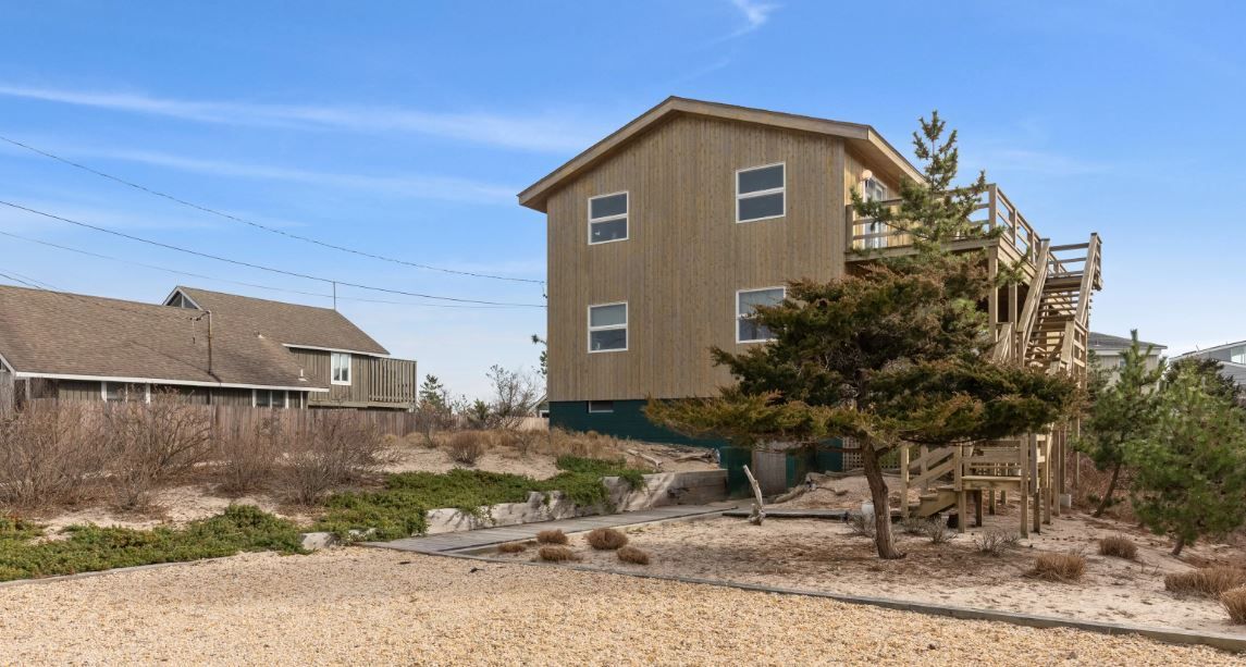 Indulge in breathtaking ocean and dune views from this exquisite beach house, featuring four bedrooms and a full bath on the first floor, with the main living area and a half bath above. The bright, open space is adorned with beach-inspired decor, creating an inviting and relaxed atmosphere. Surrounded by glass and a spacious deck with multiple seating options, this home is perfect for both entertaining and unwinding. Additional conveniences i