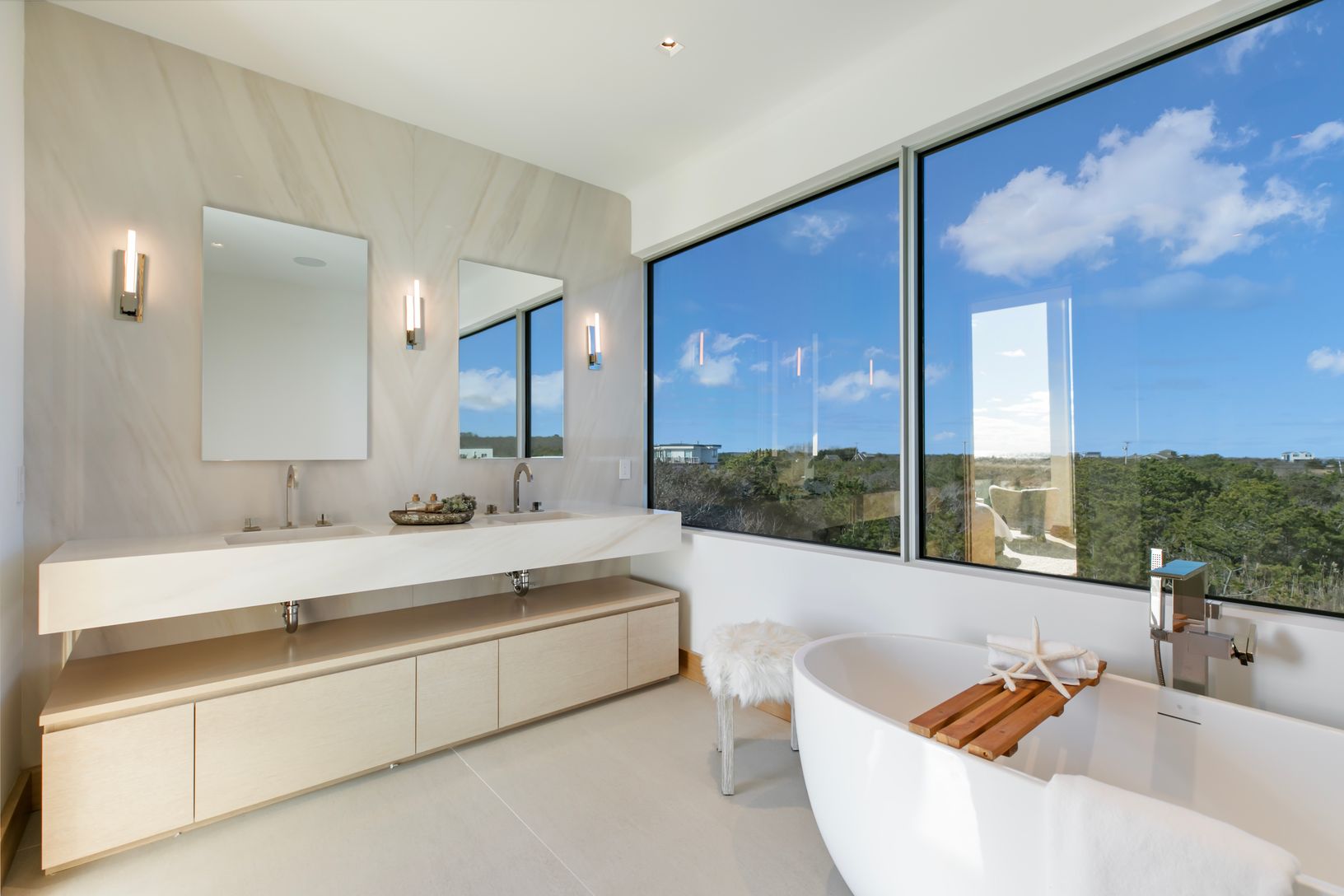 One-of-a-kind property, impossible to ever get this location again! Located on its own private tract in Nappeague, this 2.6 acre New Construction, Modern Oceanfront, is the best deal on the market. This estate overlooks 120' of pristine beach frontage, with a waterfront pool, swim current, jacuzzi, and retractable cover, perfect for year-round use. This Bodenchak Design & Build original is ready for a September move in date, and promises a