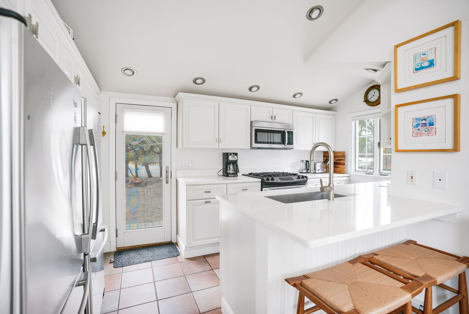Located across the street from private beach access enjoy the best of beachside living in this charming 4-bedroom, 3-bath home. The main floor offers three bedrooms and two full baths, while the private upstairs primary suite includes its own balcony—perfect for savoring cool ocean breezes and morning coffee. Outside, expansive decking creates the ideal setting for entertaining or relaxing after a day at the beach, complete with an outdoor sho