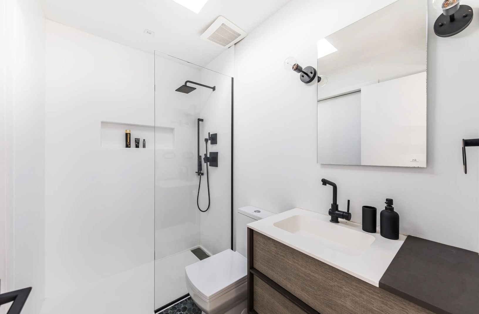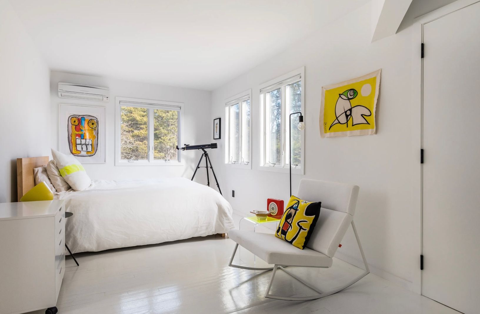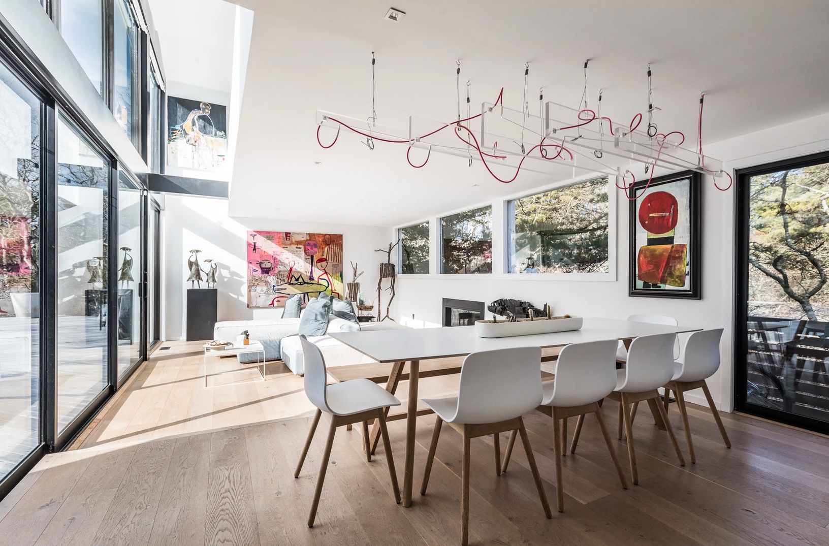 This furnished contemporary home, built in 2017, offers approximately 2,270 square feet of comfortable living across two levels. Features include hardwood floors throughout, an open layout, and a welcoming living area with a fireplace.