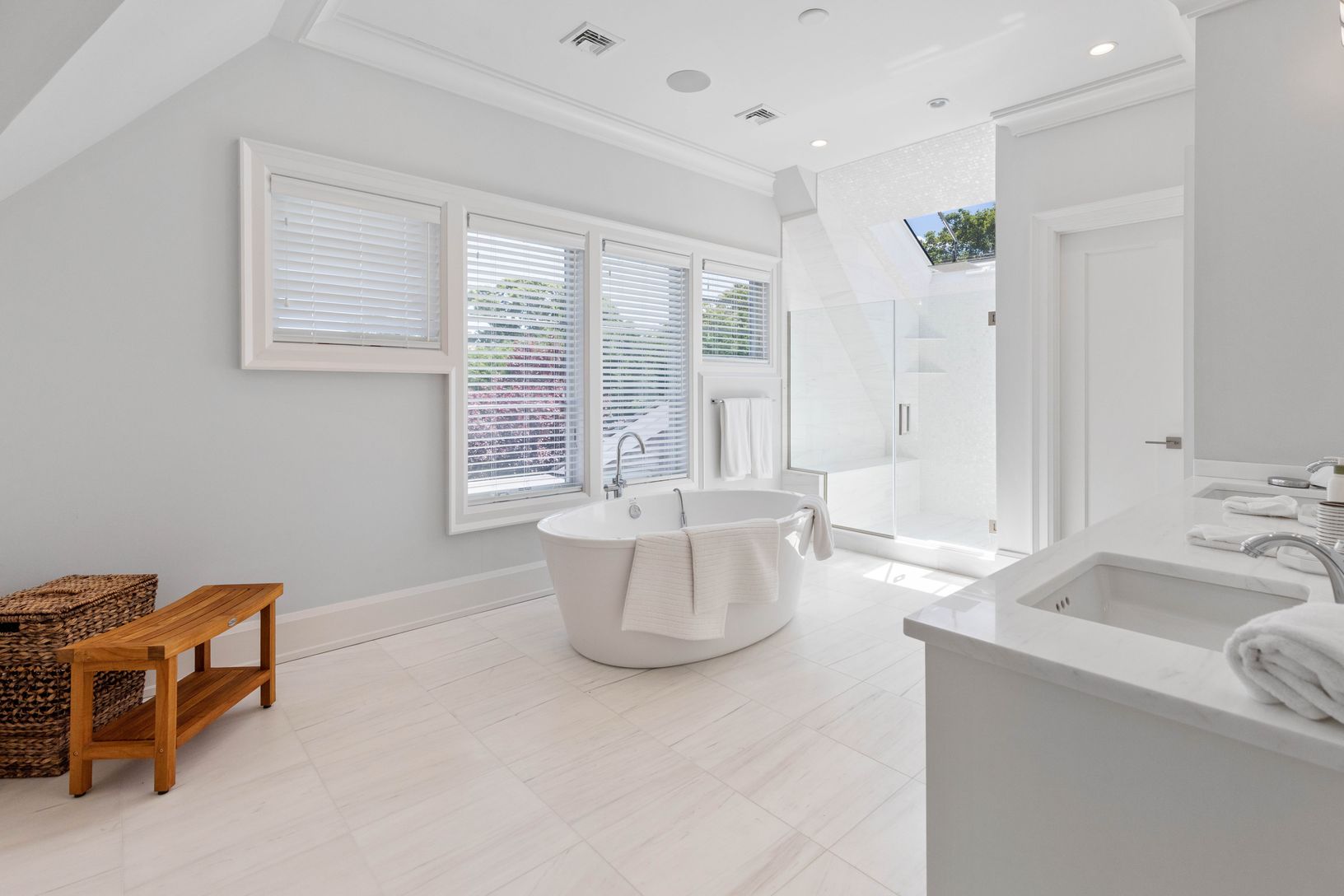 Enjoy Your Summer in this Fabulous Home, Close to Beach and Town Where Luxury Abounds! This Home Boasts a Grand Master Suite on the Upper Level with it's own Den/Sitting Room, Deck, Bathroom with Heated Floors and Skylights. There are 3 additional en-suite Bedrooms on the Upper Level, all with Skylights in the Shower to add to the Light Filled Surroundings. The Main Level of this Home Offers an Open Living Space with Gourmet Chefs Kitchen, Lar