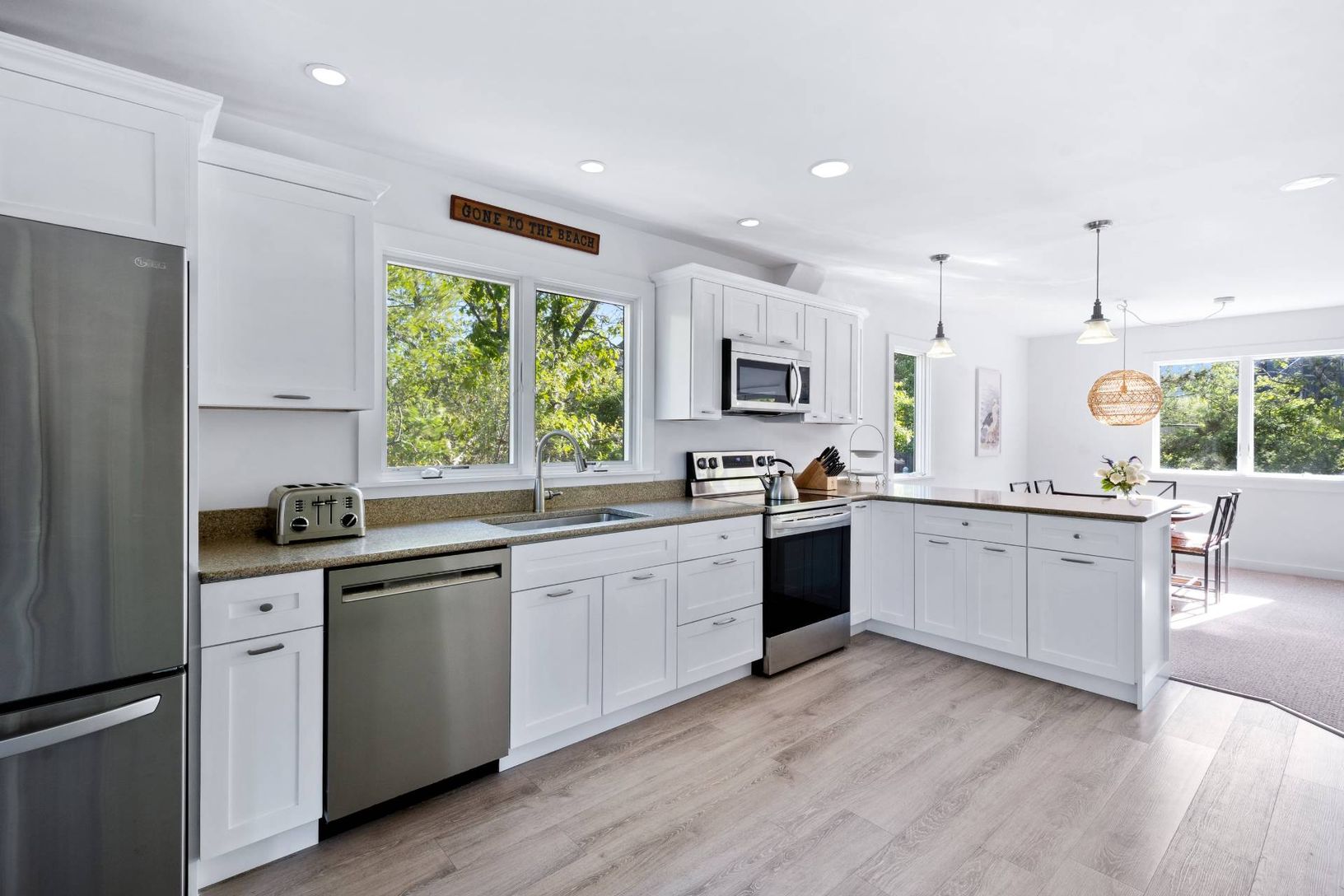 Welcome to The Beach House. Just a minute from this retreat is private access to an expansive, white sandy beach and the great Atlantic Ocean. Located on a quiet cul-de-sac and set on a larger than average piece of property in the Dunes, enjoy the sea breezes in total privacy while entertaining your friends and family or peacefully soaking in the sun on its spacious back deck. This Beach House is crisp and clean with 4 bedrooms and 2 baths, i