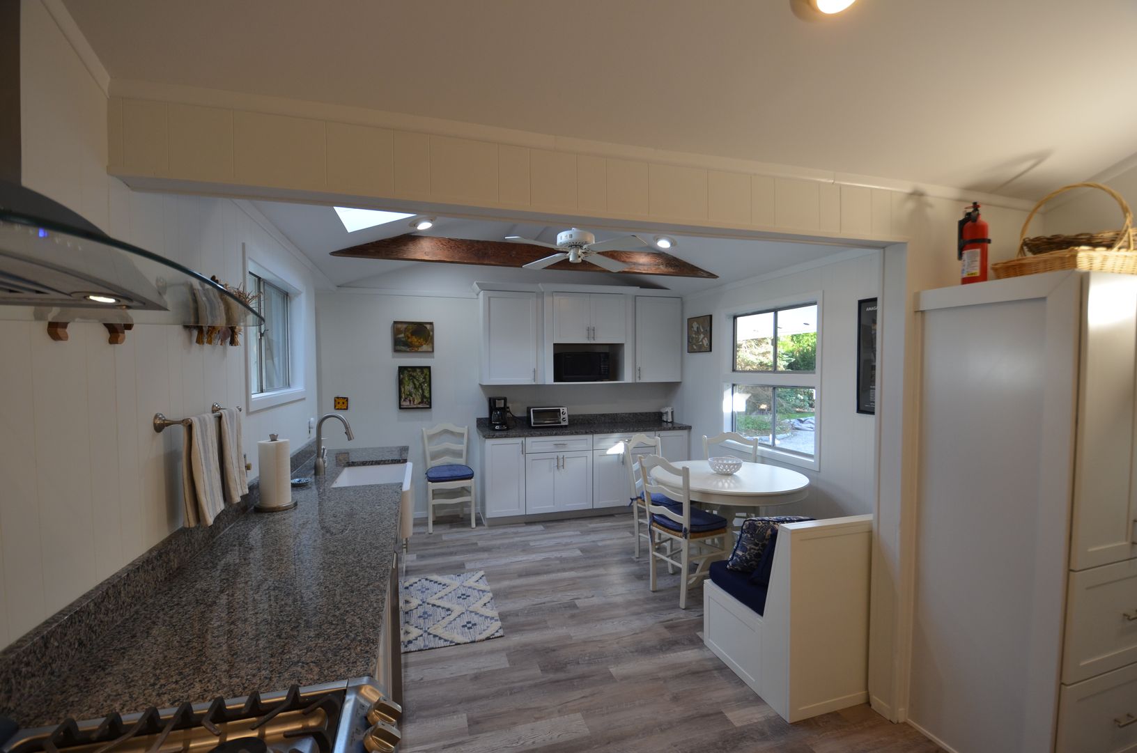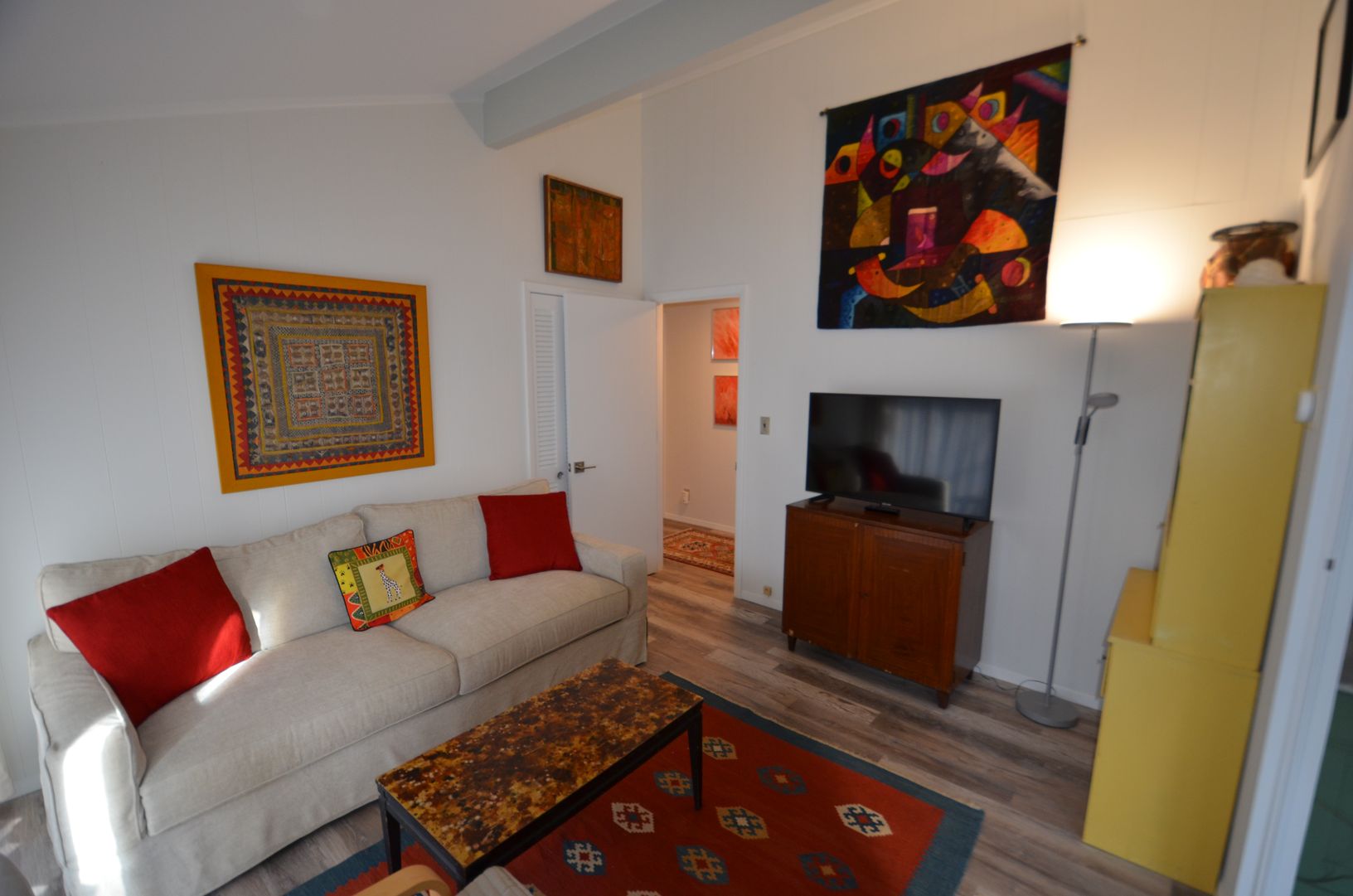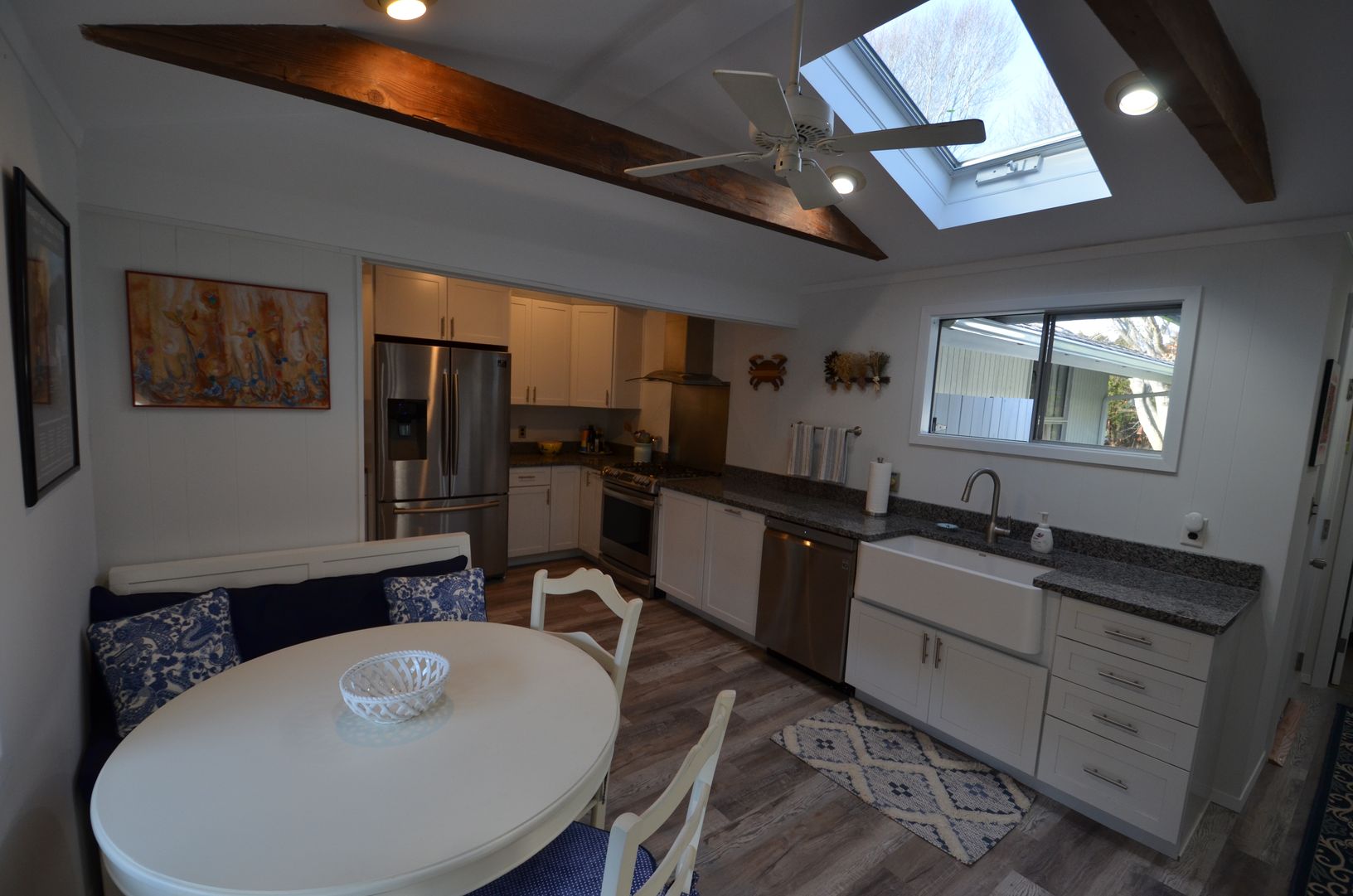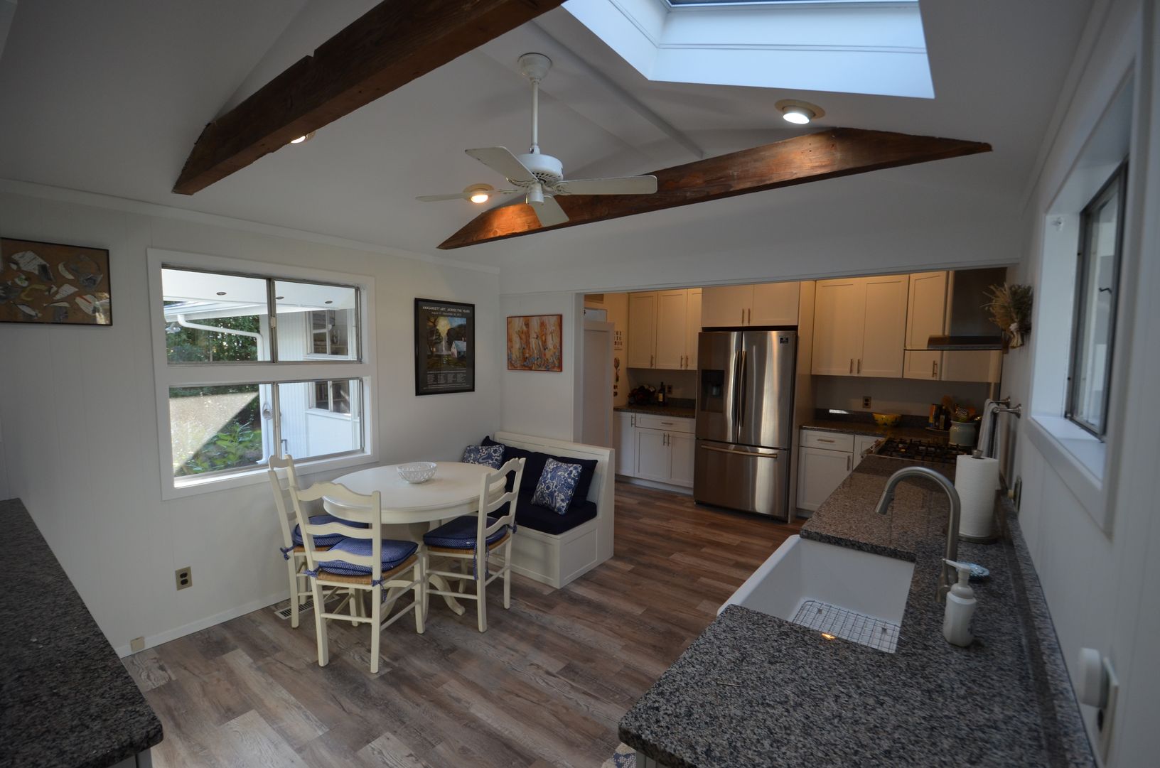 Amagansett - This desirable Bluff Road location is only a short distance to the beach and town. It Is a one-story, 3 bedroom, 3 bath mid-century modern house with cathedral ceilings and large sliding glass doors, opening to the beautifully landscaped yard and brand new heated gunite pool.The living/dining area has a fireplace, adjoining den, and patio. It has an eat-in kitchen with all appliances..