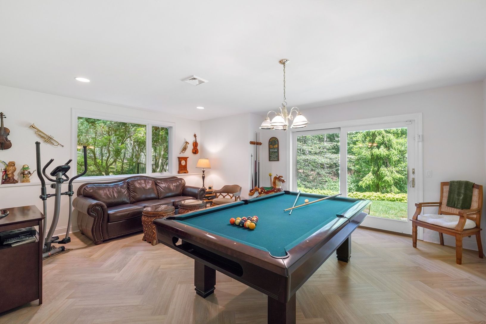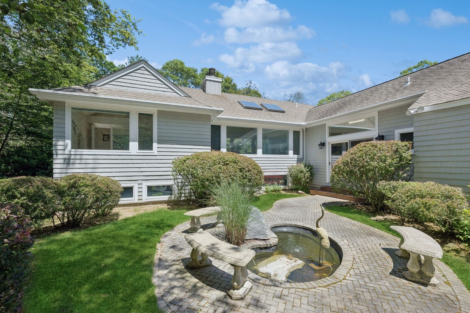 Rental Registration #: 24-1087 Tucked in the trees, yet minutes to the ocean, Amagansett Village and farmer's market, enjoy this delightfully private four-bedroom, multi-level Post Modern beauty. The home includes a sumptuous master suite with a lavish Jacuzzi bath, spacious, sunlit living and dining area, open kitchen, plus a billiard/game room. Exquisite grounds feature a courtyard with meditation pond, arbor, decks for sunning or dining a