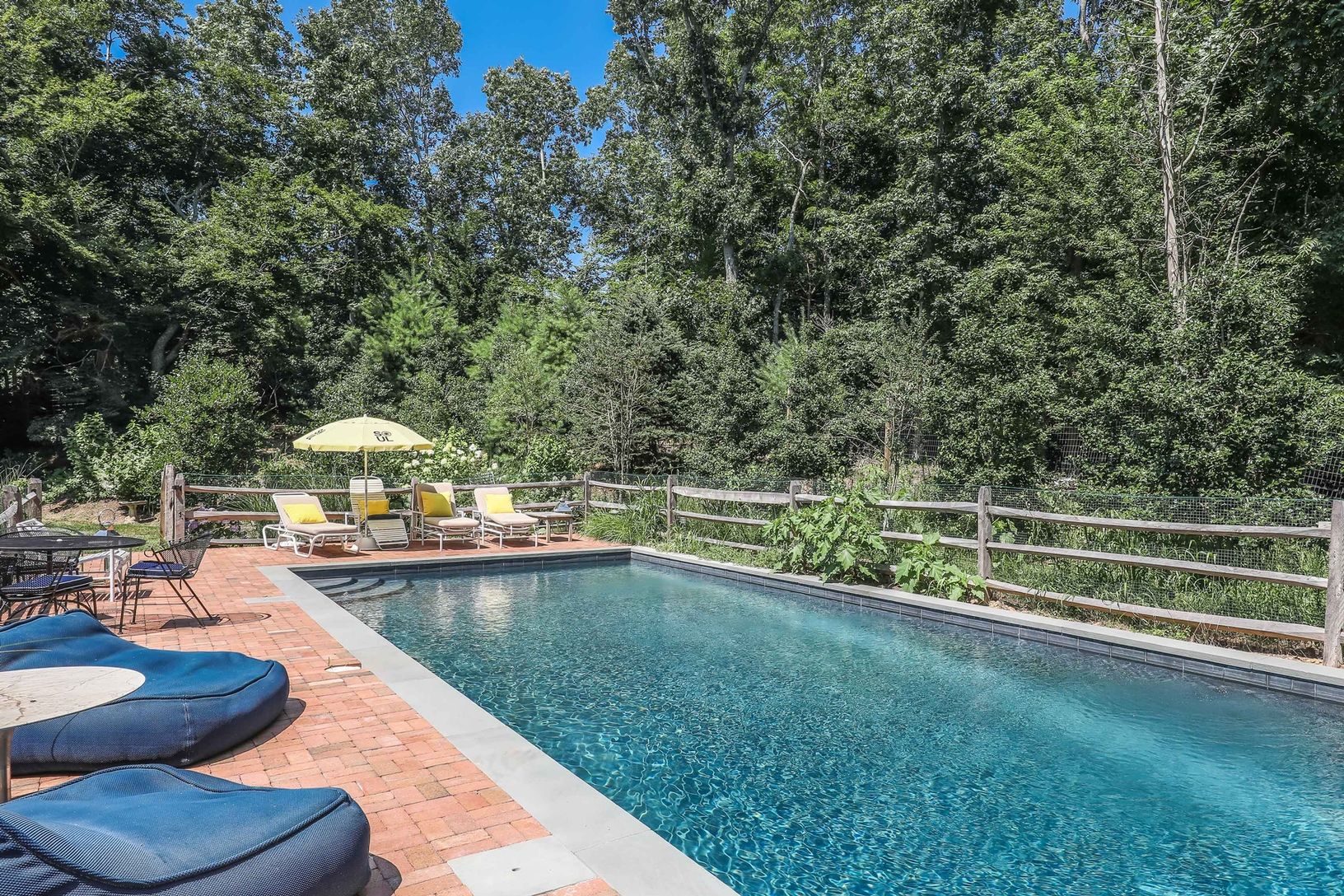 Rental Registration #: 18-845 Amagansett farmhouse one mile to Amagansett Main Street and 1.5+/- miles to ocean beach. There is a large inviting porch with great sunsets over the farmland. There is one bedroom and bath on the first floor and four bedrooms and two baths on the second floor. There is a large living room and dining room over looking the back yard. The kitchen open to a den and a breakfast room. There is a new heated gunite pool