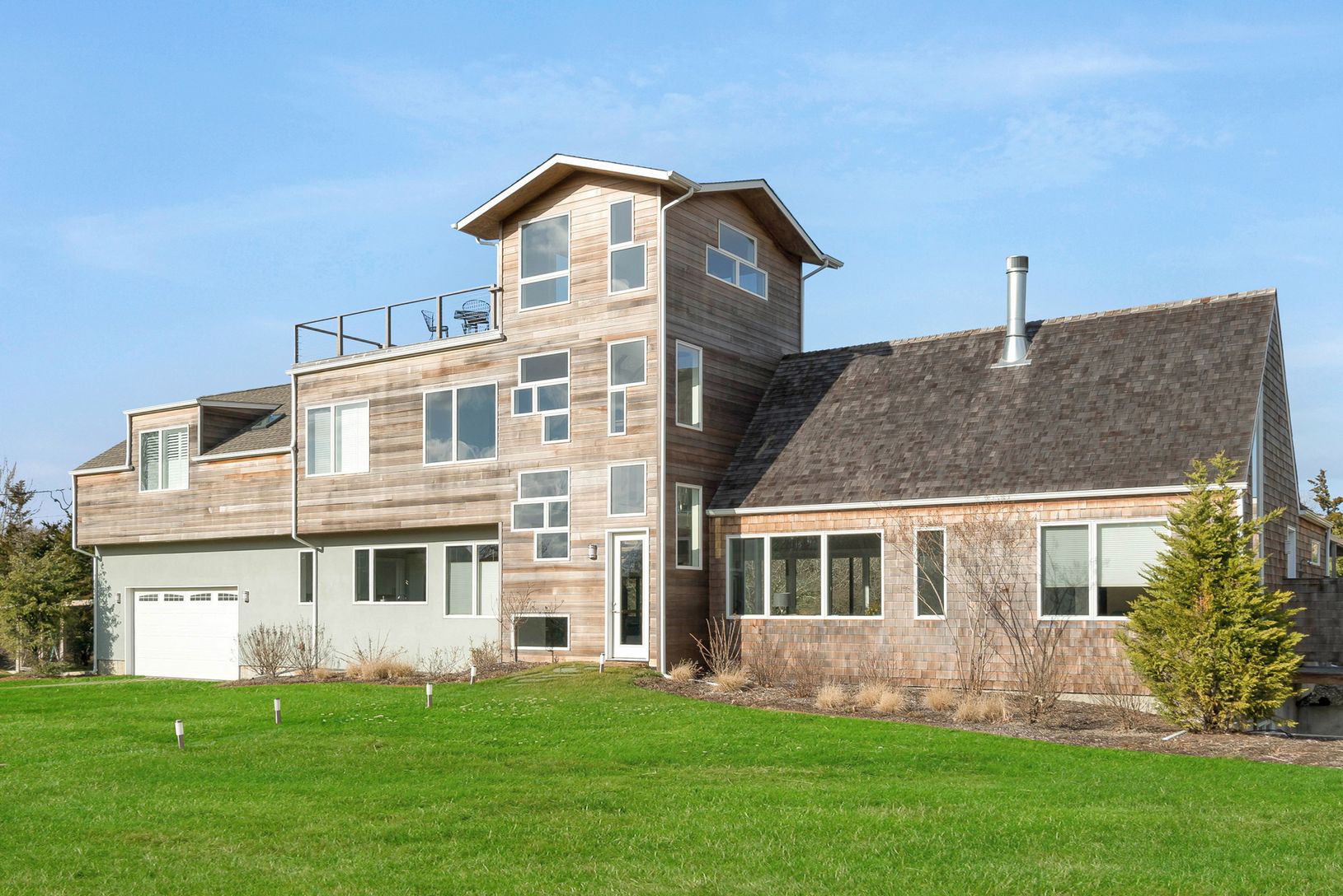 Rental Registration #: 18-2334 Spend your summer in this newly constructed contemporary home, located just minutes from Amagansett village and some of the finest ocean beaches the Hamptons have to offer. Nearly 4,000 sq. ft. built on two acres, this home provides five bedrooms, five and a half bathrooms throughout the 2.5 stories leading to the balcony rooftop. Upon entry, experience the sun filled open layout with living area, dining area and