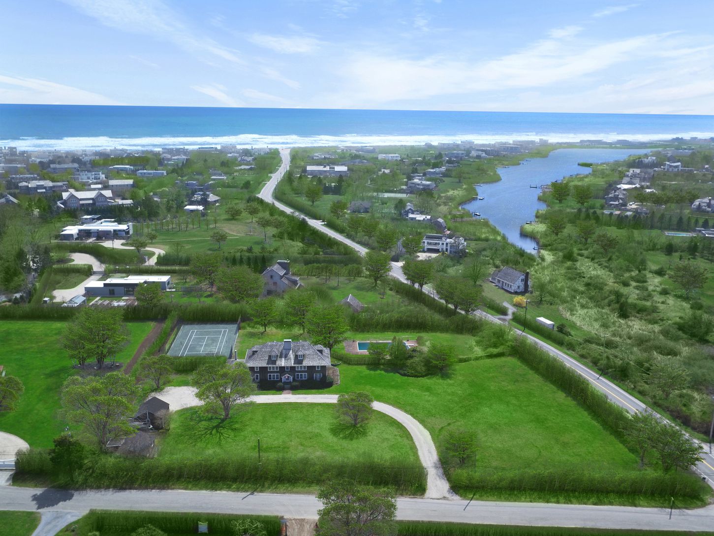 Imagine making this quintessential south of highway property your very own. The existing, turn-of-the-century home on 25 Quimby Lane had last been renovated in the 90's, and now awaits its re-entry to 21st-century magnificence. The beautiful grounds, completely hedged for privacy and graced with hundred-year-old trees, feature a tennis court tucked into the back corner of the property, and an in-ground pool. Within earshot of the ocean, this i