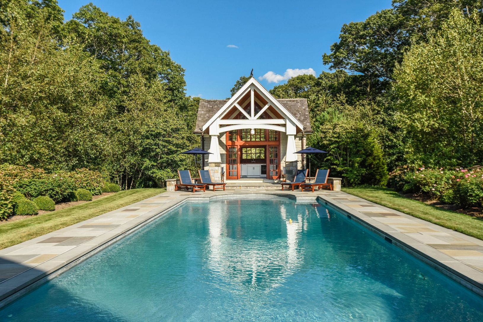 A beautiful winding driveway sets the stage for this very private gated hilltop estate nestled on 3.65 acres midway between Bridgehampton and Sag Harbor. Designed by architect John Laffey, this well-built shingle-style home incorporates exquisite stonework and mature landscaping. It features more than 8,550 +/- sq.ft. of living space in the main house and two accessory buildings. Despite the home's scale, the rooms are intimate, exuding warm