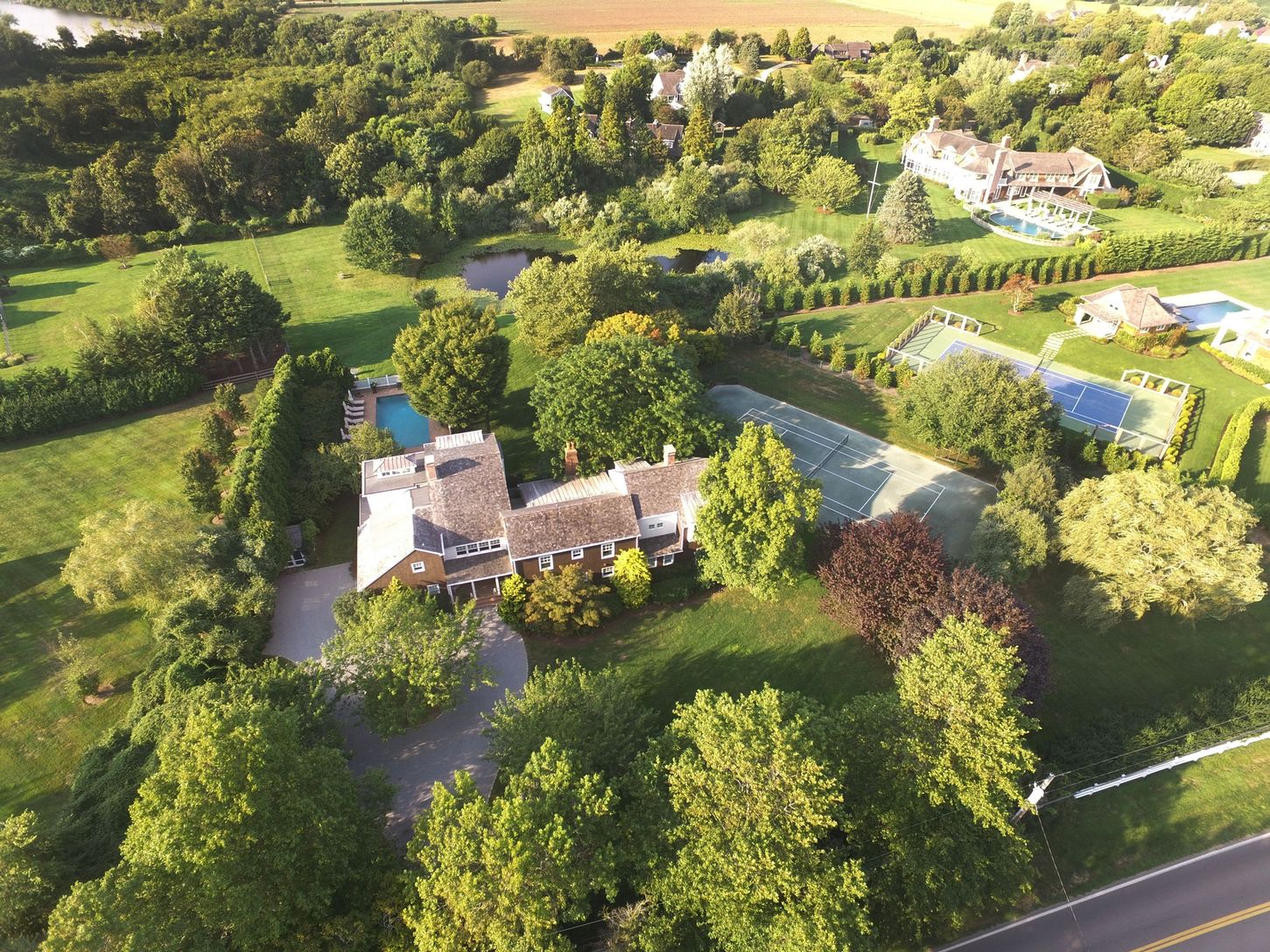 Scenic pond front farmhouse in Bridgehampton South with 6,400 square ft. 8 bedroom, 9 bath farmhouse, heated gunite pool, and tennis. The neighborhood is beyond impressive with comps ranging from $11M to $13M. Gated and private. One of the most idyllic and serene properties in the Hamptons