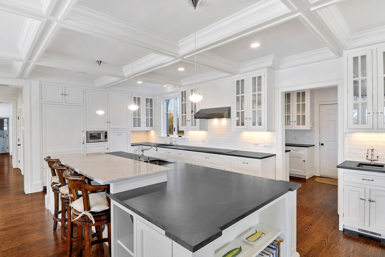 This stunning traditional features five bedrooms and five full bathrooms. Airy and open spaces on the first