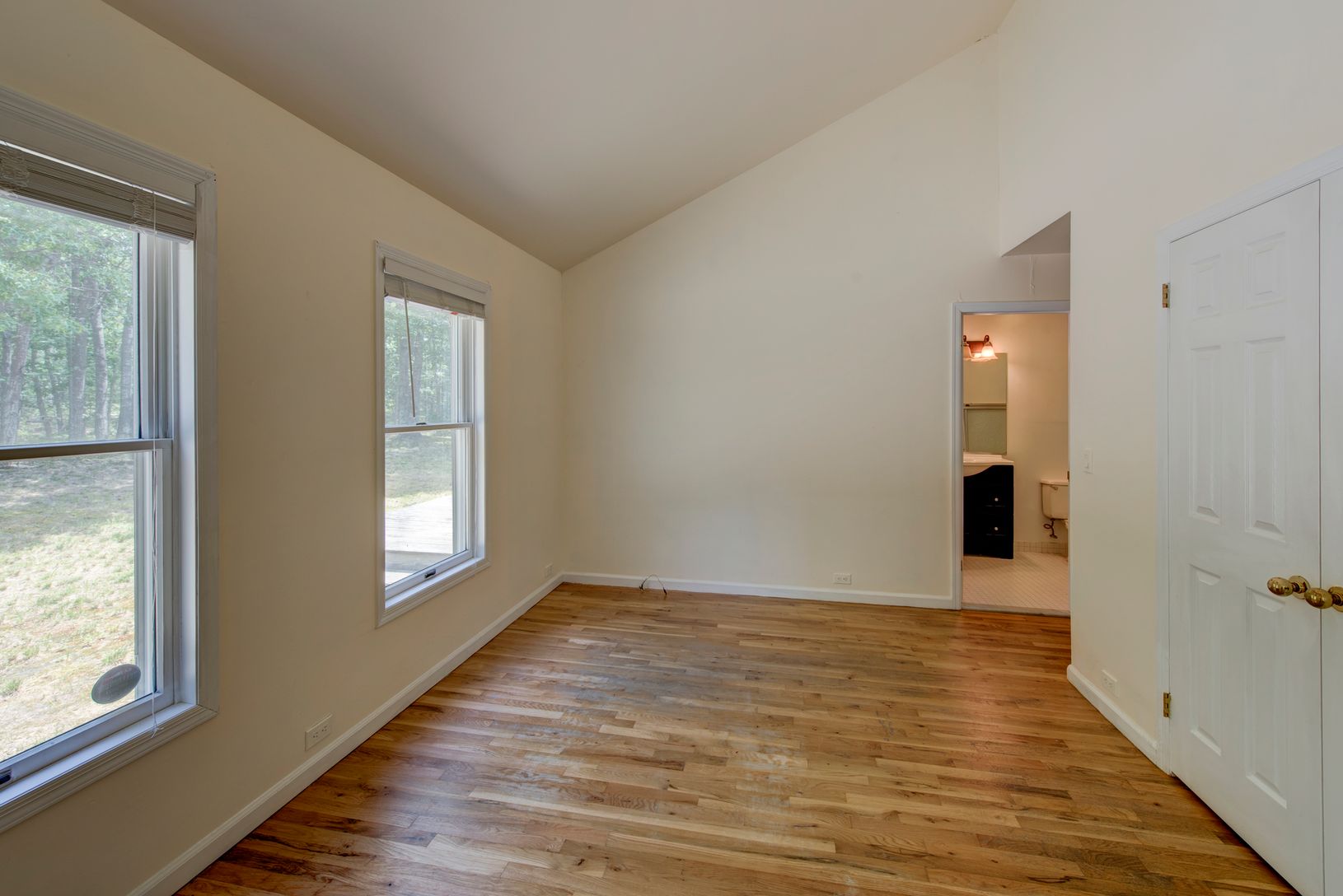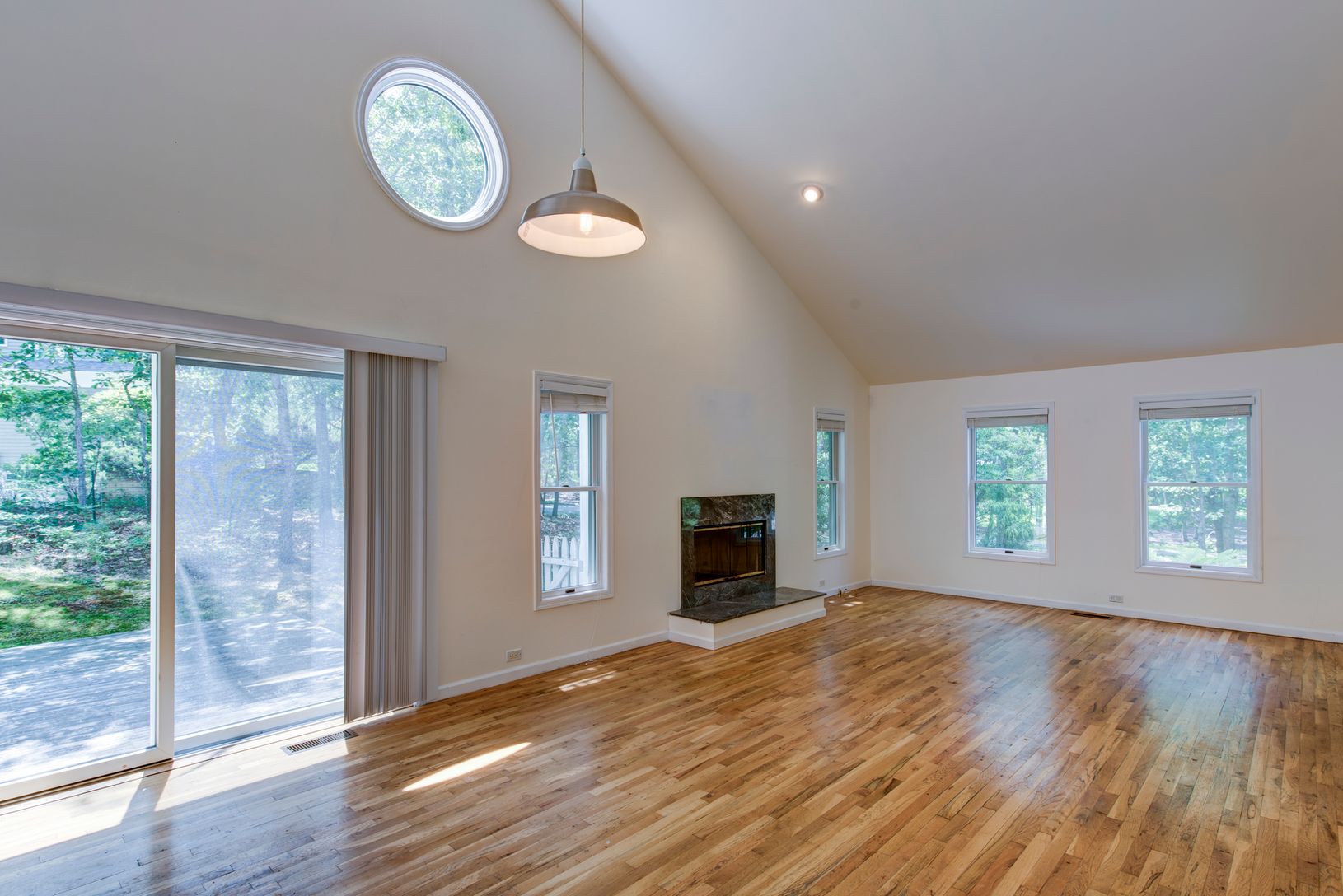 Located on a quiet cul-de-sac in the Bridgewoods community this home features three bedroom, two bathroom, open kitchen/dining room/living room floor plan with cathedral ceilings and fireplace. The house is 1500 +/- sq. ft. and is situated on .57 acres. Less than 2 miles from Bridgehampton Village and just moments from the ocean, Sag Harbor and the bay. Backs up to Town reserve and room for pool.