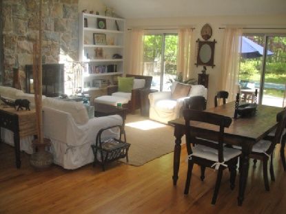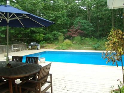 Nestled in a desirable cul-de-sac community, this single level contemporary offers easy Hampton living. The home's floor plan has an open living feeling with high ceilings, living room with fireplace and sliding doors overlooking pool and newly installed deck, as well as 3 bedrooms and 2 & 1/2 bathrooms. The Master bedroom, located separate from guest bedrooms is a peaceful sanctuary with high ceilings and sliding doors overlooking glisten