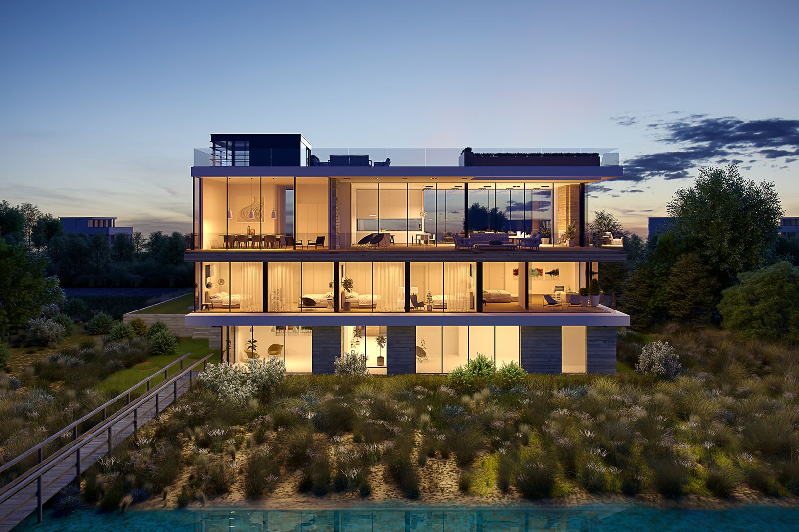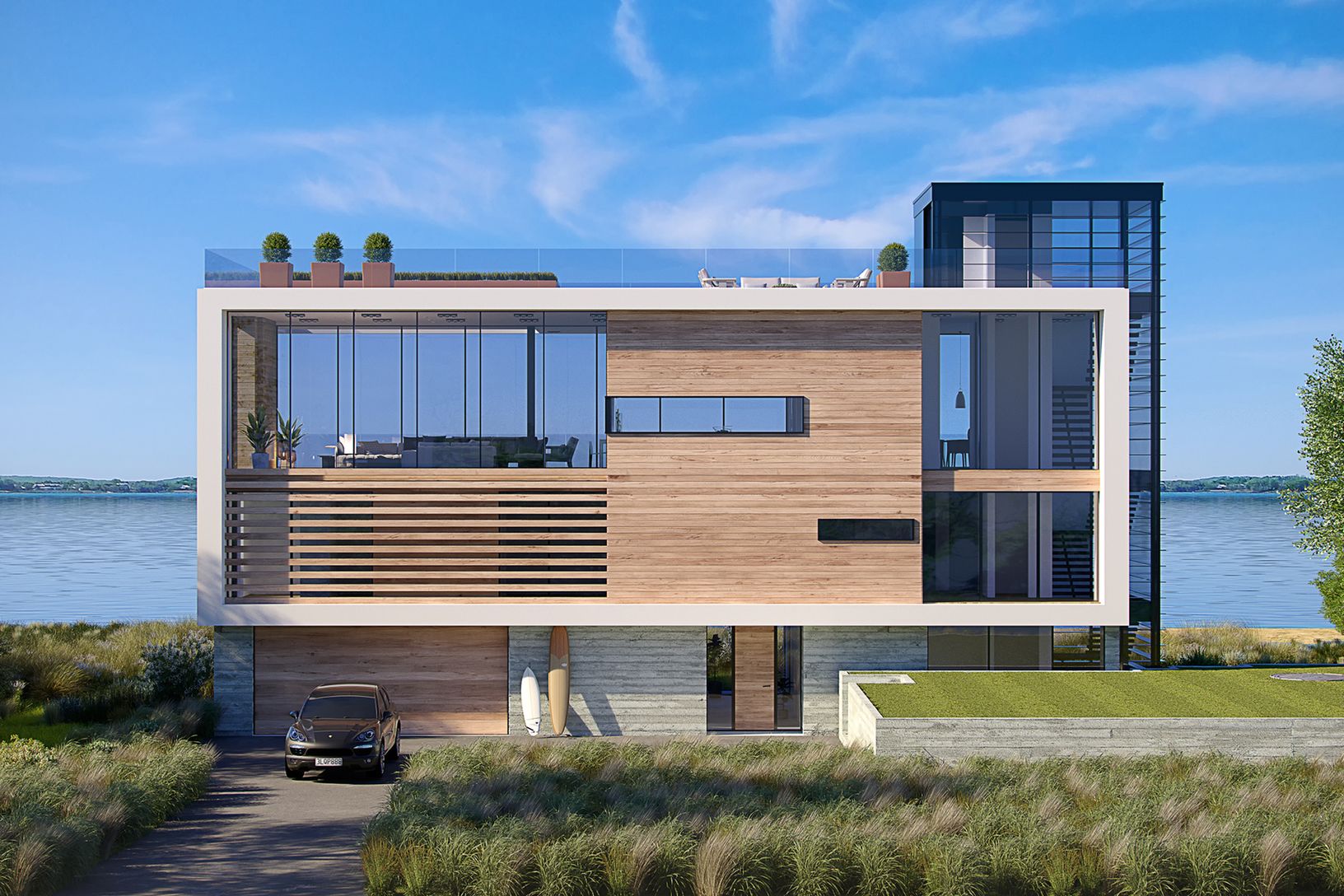 This ultra-modern waterfront home has achieved unprecedented standards in sophisticated architecture and interior design while maximizing the panoramic views of Mecox Bay and the Atlantic Ocean through walls of glass and a rooftop entertaining area. Brought masterfully to life by world-renowned Barnes Coy Architects, known for distinctive modern residential designs in the Hamptons, this new construction home on coveted Dune Road in Bridgehampt