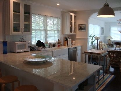 This beautifully furnished 3-bedroom, 3-bath Traditional is situated on 0.92 acre in the heart of Bridgehampton's horse country. The interior is graced with wide-plank floors, exposed beams, a fireplace, 30' ceiling in the living room, an eat-in gourmet kitchen, formal dining room, and French doors that open to the poolside patio. There is also an enclosed porch that offers more possibilities for entertaining, a brick patio, and a heated swimm