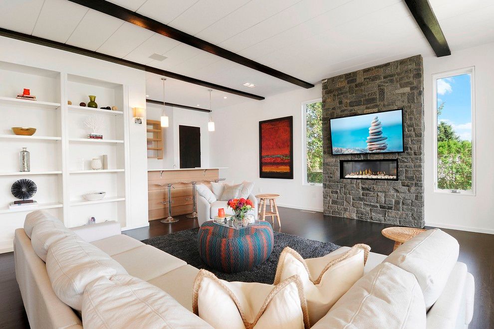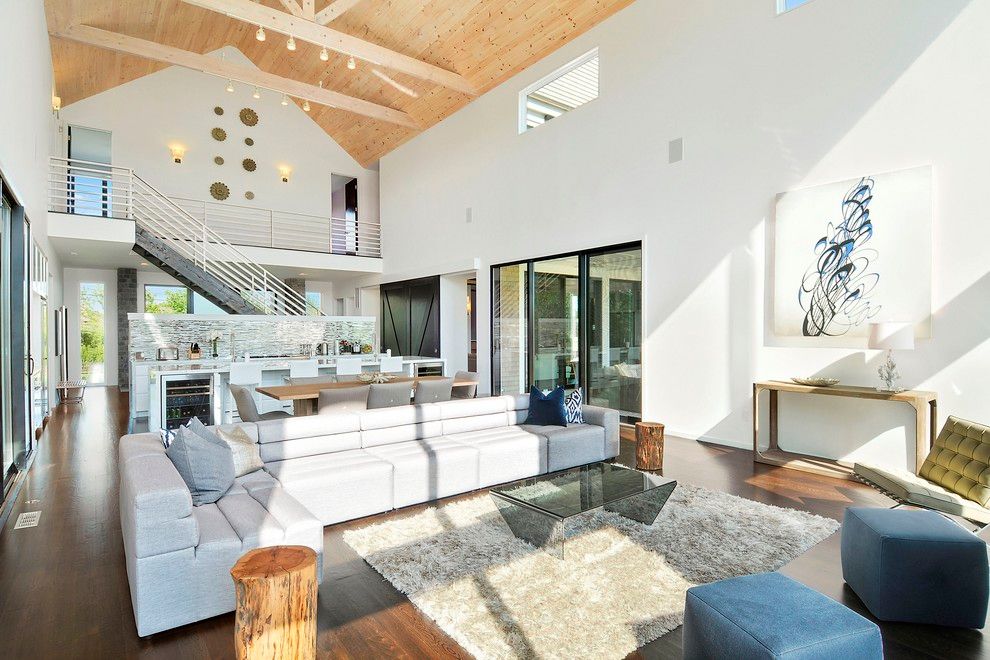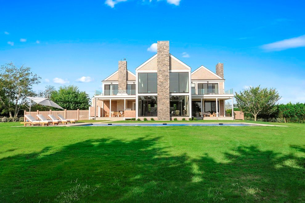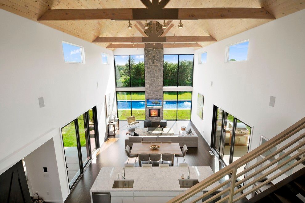 Magnificent 2014 custom Modern Barn close to the village of Bridgehampton in the middle of Horse and Wine Country. Where Rustic Barn features blend with Modern Technology like its wood beams and Savant smart system. Double height glass wall in an open great room delights in having a soaring ceiling height, state of the art kitchen with dining and entertaining areas by the large two story height stone fireplace (#1 of 4). Additional entertainin