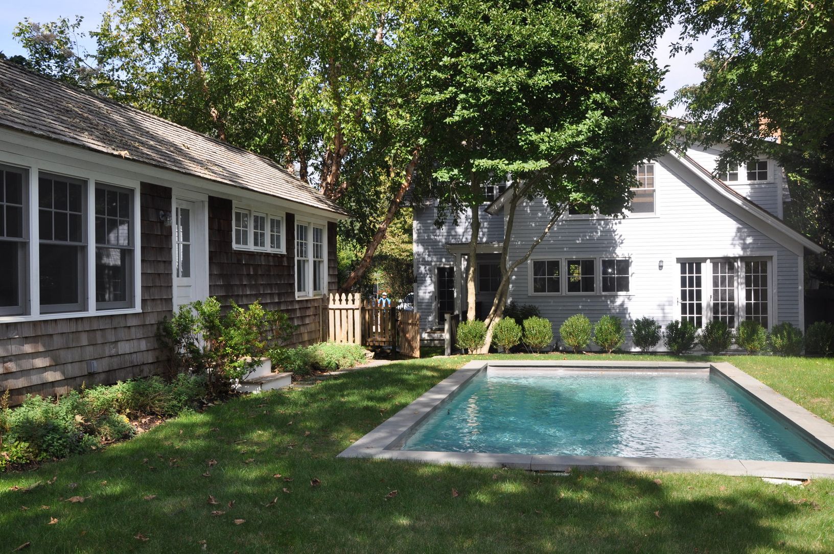 This charming home is in a great location, just a half mile to Bridgehampton village. It is a new home with wonderful details that evoke the historic Hamptons village homes. It has a gourmet kitchen, fireplace in the living room, 3 bedrooms, and 2.5 baths in the main house and an additional full kitchen, bedroom, living room and bath in the legal guest house. Plus a heated pool in the private back yard.