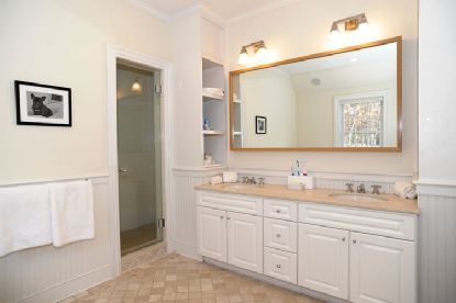 This five bedroom, five and one-half bath, stylish Traditional has a wonderful, open flow and is located at the end of a cul de sac, providing privacy and serenity surrounded by preserved acreage as far as the eye can see. The house is also conveniently located near village shops, restaurants, transportation, and ocean beaches. The master bedroom offers a spacious deck overlooking the private, landscaped grounds. There are four additional en s