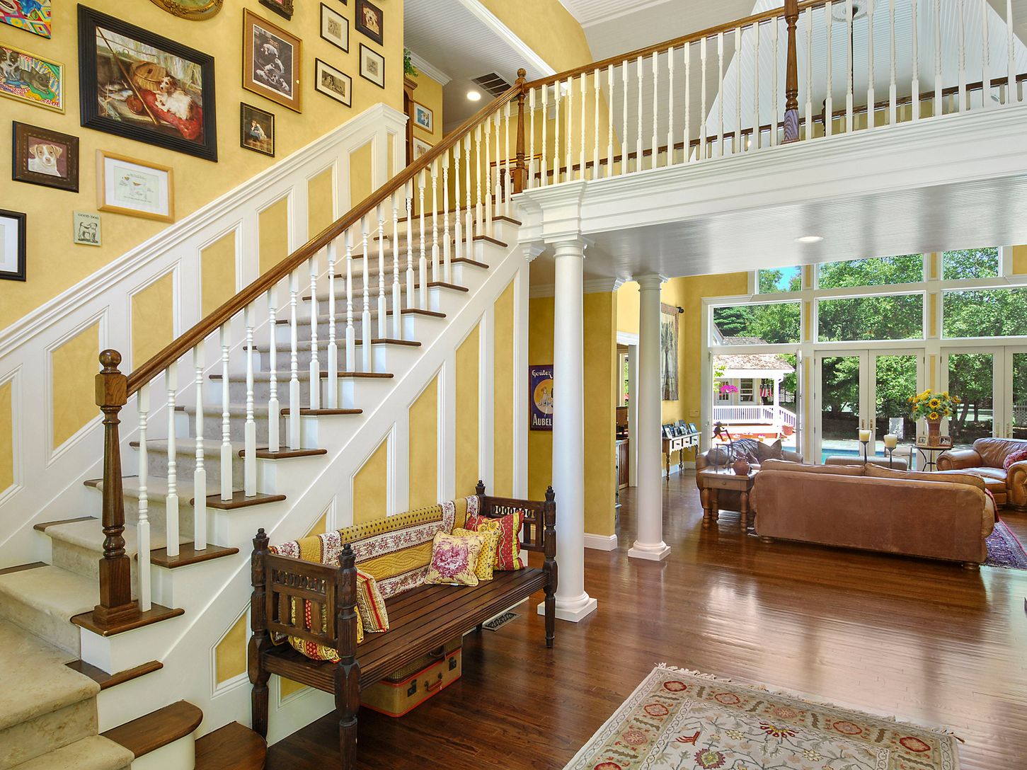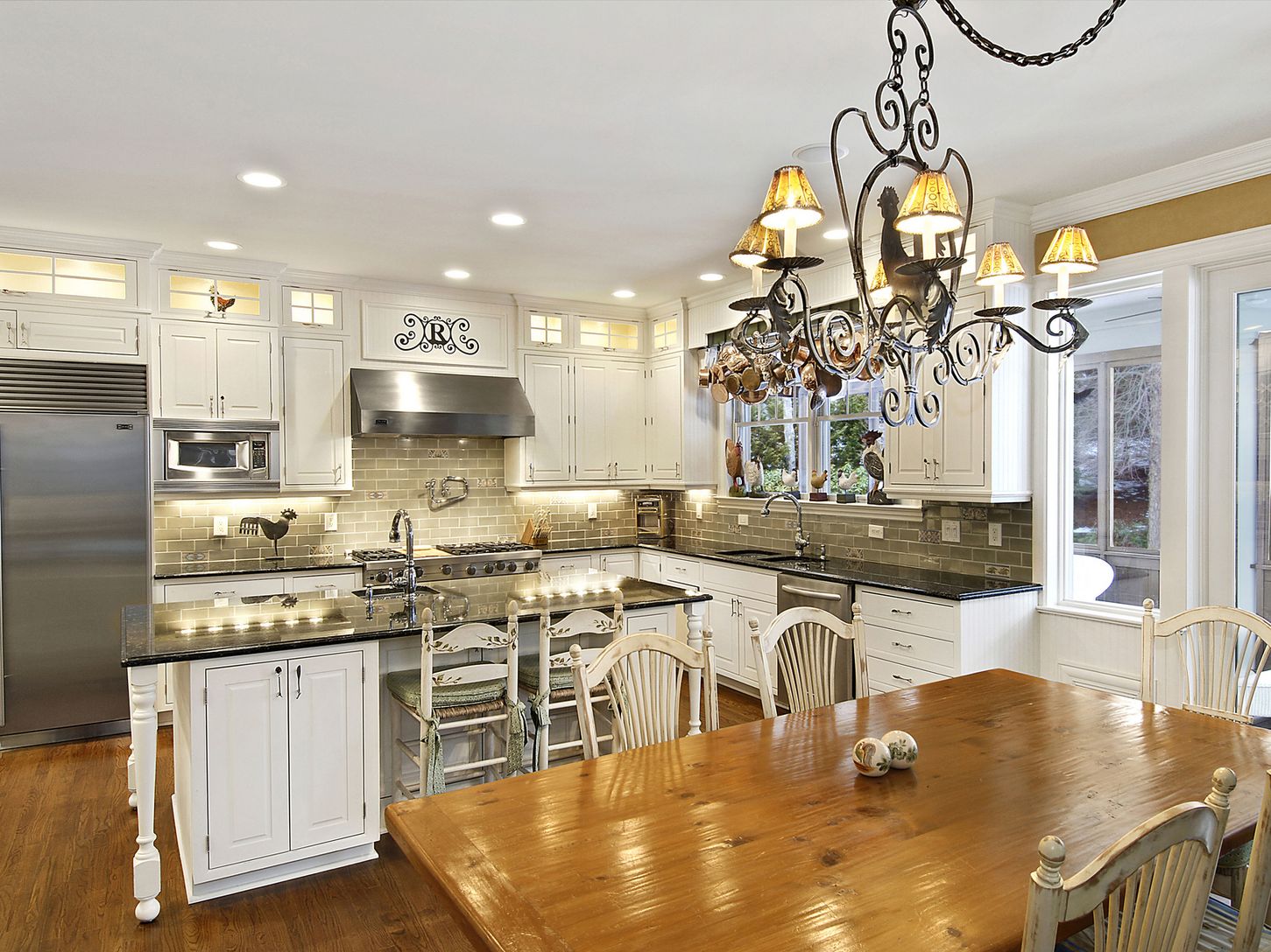 Perched on a hill, a gated entrance leads to this custom 6-bedroom, 8-bathroom traditional manor home offering privacy and grandeur. An exquisite full height foyer and great room, with a trio of French doors and windows above, overlook the pristine grounds. The first floor offers a media room, library and full height master wing with fireplace and access to the outdoors. The professional grade kitchen complete with breakfast area flows into th