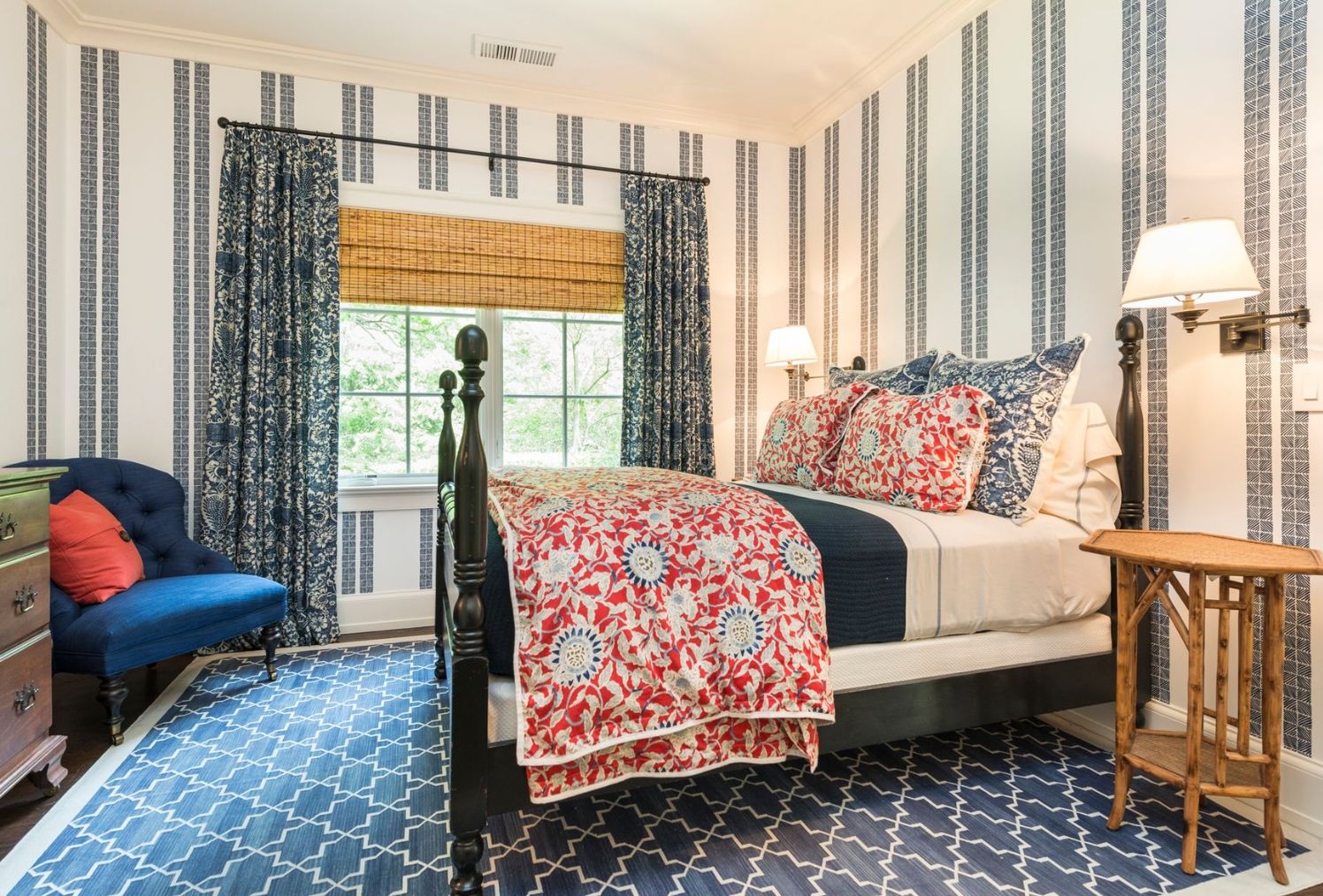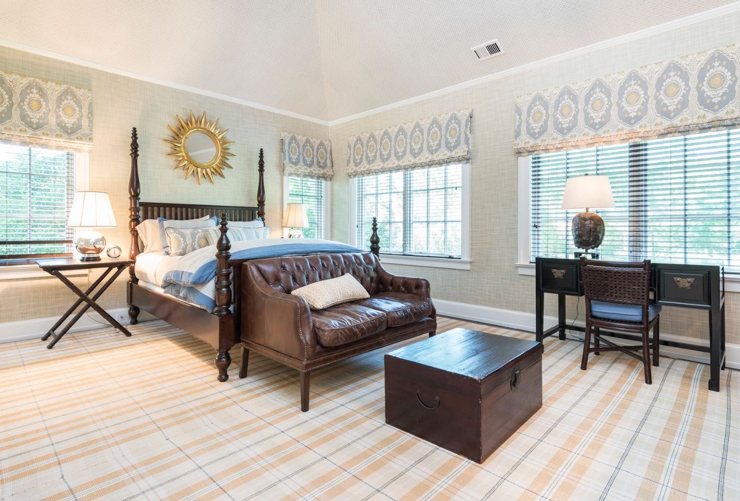 Impressive Bruce Nagel designed and professionally decorated Bridgehampton Village home with dramatic entry foyer with sweeping stairway, 2 master bedrooms overlooking the expansive rear yard and 2 guest bedrooms with an exquisitely outfitted bath, formal living room with fireplace, family room with flat screen TV and a professional kitchen with adjacent dining. Enjoy entertaining on the stone patio off of the formal living area or relax on th