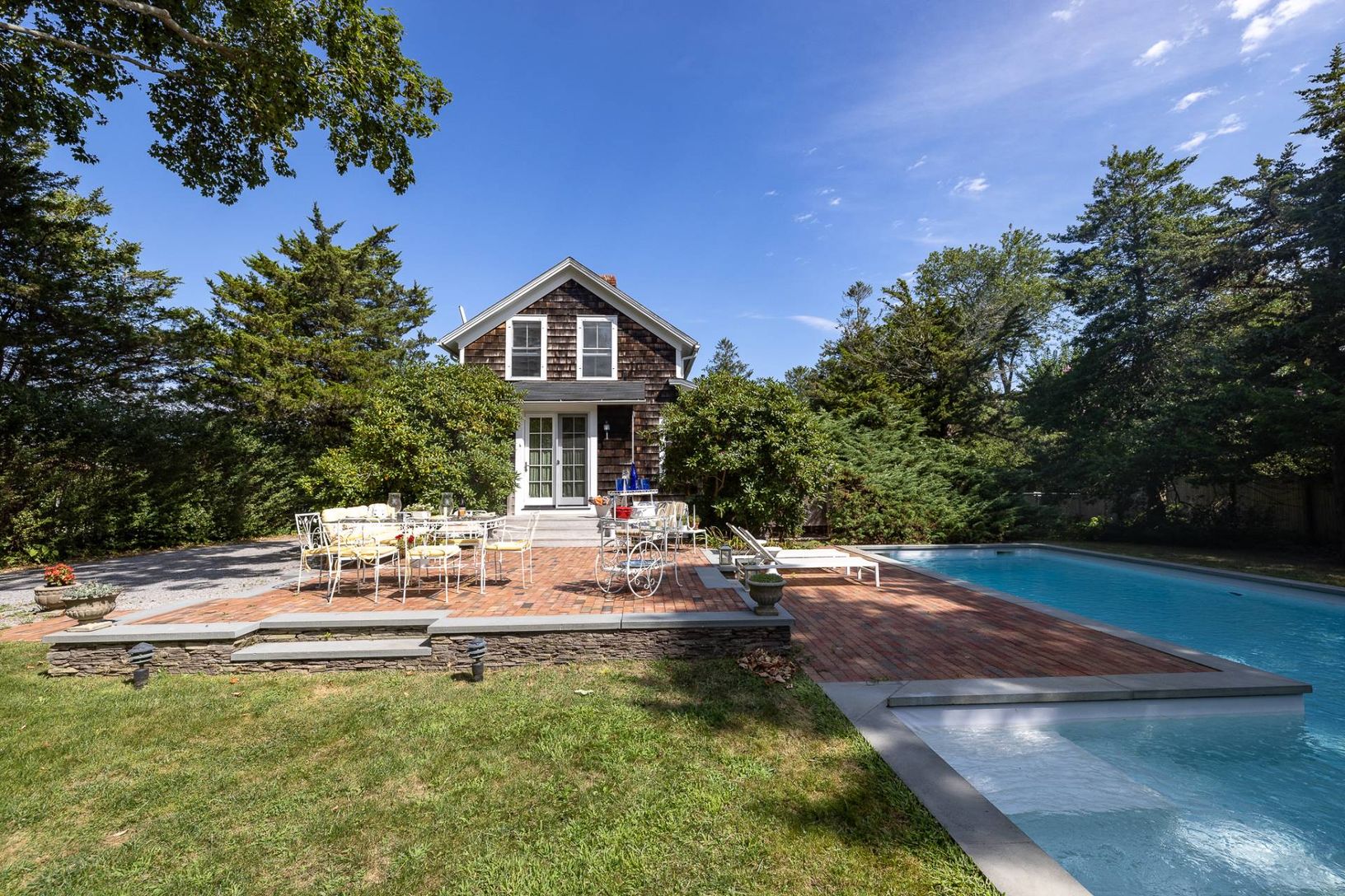 This convenient compound was built in 1921 and maintains its unique traditional charm. The main house features two bedrooms, one and a half baths. The home is furnished in an elegant and chic style, and is sited on a fantastic and private almost half acre with mature landscaping. Summer tenant will have access to charming rear yard cottage with an additional full bath. A heated pool and the "benefit" of a car with beach pass completes this spe