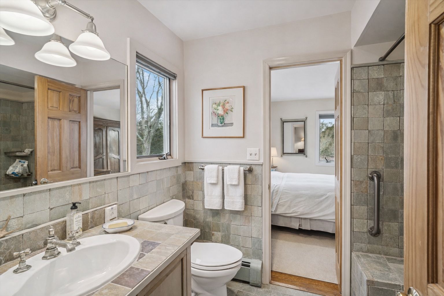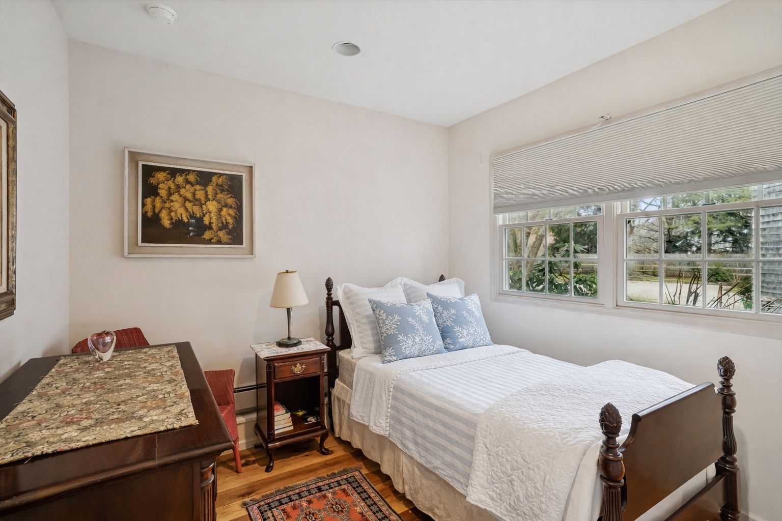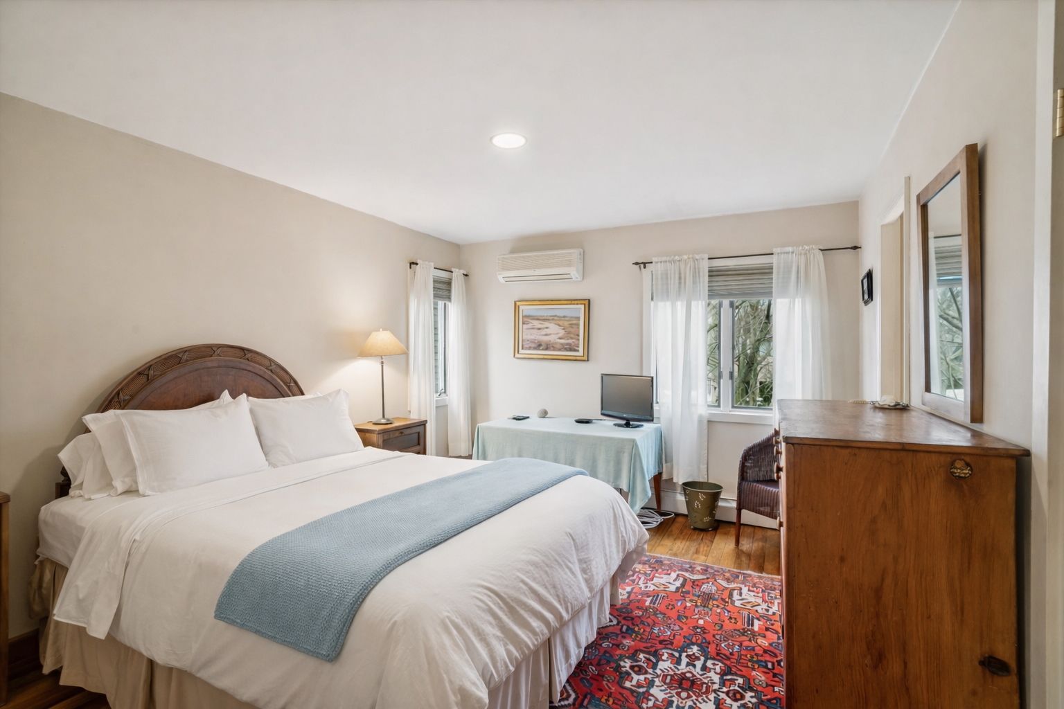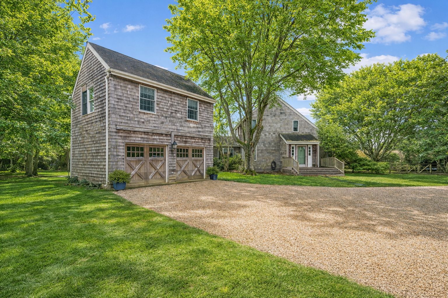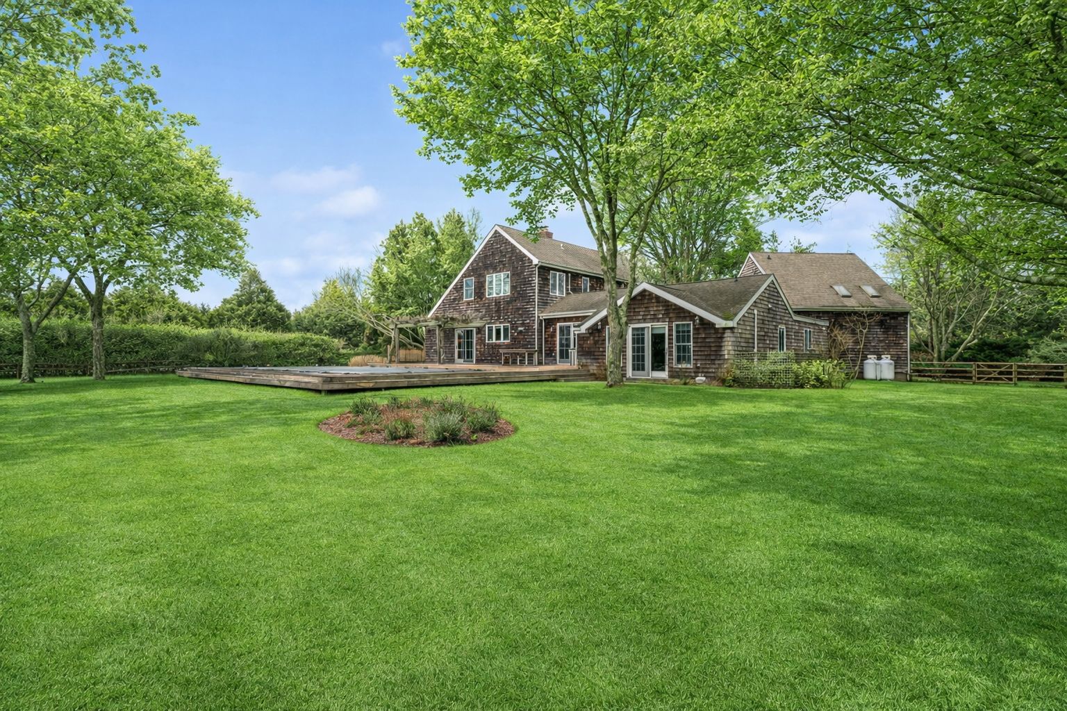 Tucked away down a long private driveway on one of the most desirable streets in the heart of Bridgehampton, this classic farmhouse offers a rare blend of privacy, space, and effortless Hamptons living. Set on a generous parcel with a massive backyard, the grounds feel both expansive and intimate, framed by beautiful specimen trees, blooming hydrangeas, and flowering trees that soak up sunshine throughout the day. A large pool anchors the outd