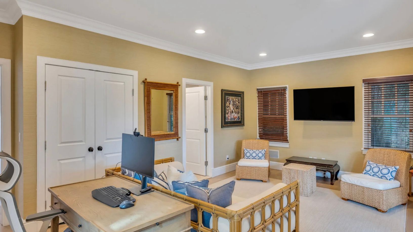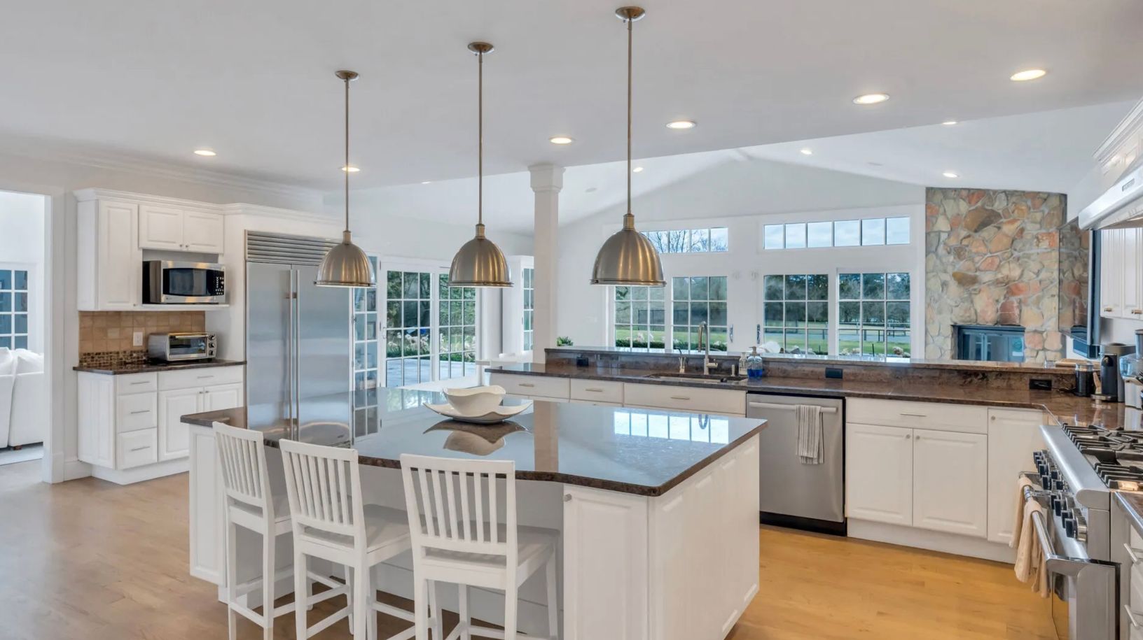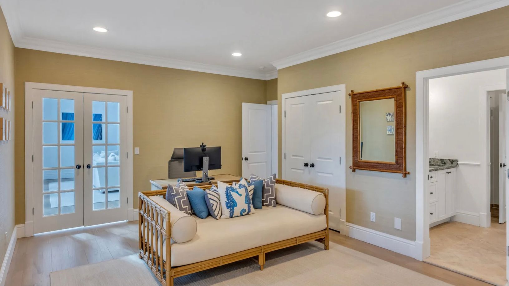 The primary suite on the first floor is a private sanctuary, while additional bedrooms and baths provide lavish a