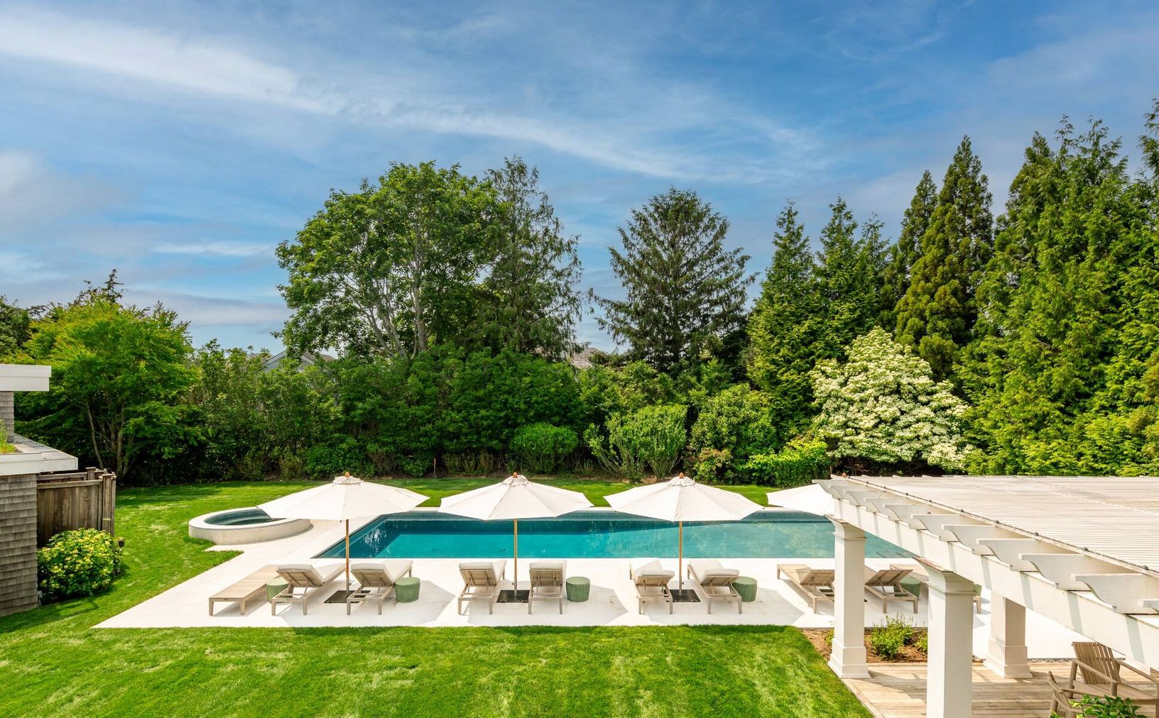 Available for a two-week rental, this newly decorated estate offers a luxurious summer escape in one of Bridgehampton's most coveted south-of-the-highway locations. Set on 2.15 beautifully landscaped acres, the property is just over half a mile to the ocean beach and close to village shops, restaurants, and farmstands. The main house features 7 bedrooms and 6.5 bathrooms across 7,000+/- square feet of living space. Highlights include a stylish