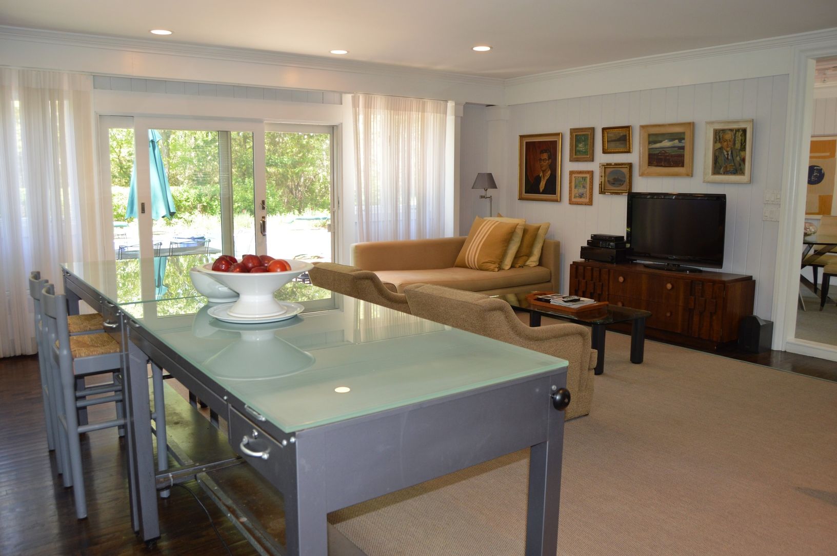 Extraordinary design and beautiful furnishings create a perfect summer headquarters, close to Bridgehampton village and ocean beaches. This elegant modern house features four bedrooms, 3.5 baths, a bright, open living room, dining room and stylish, top-of-the-line designer kitchen. Sited on approximately an acre of very lovely private property with heated pool.