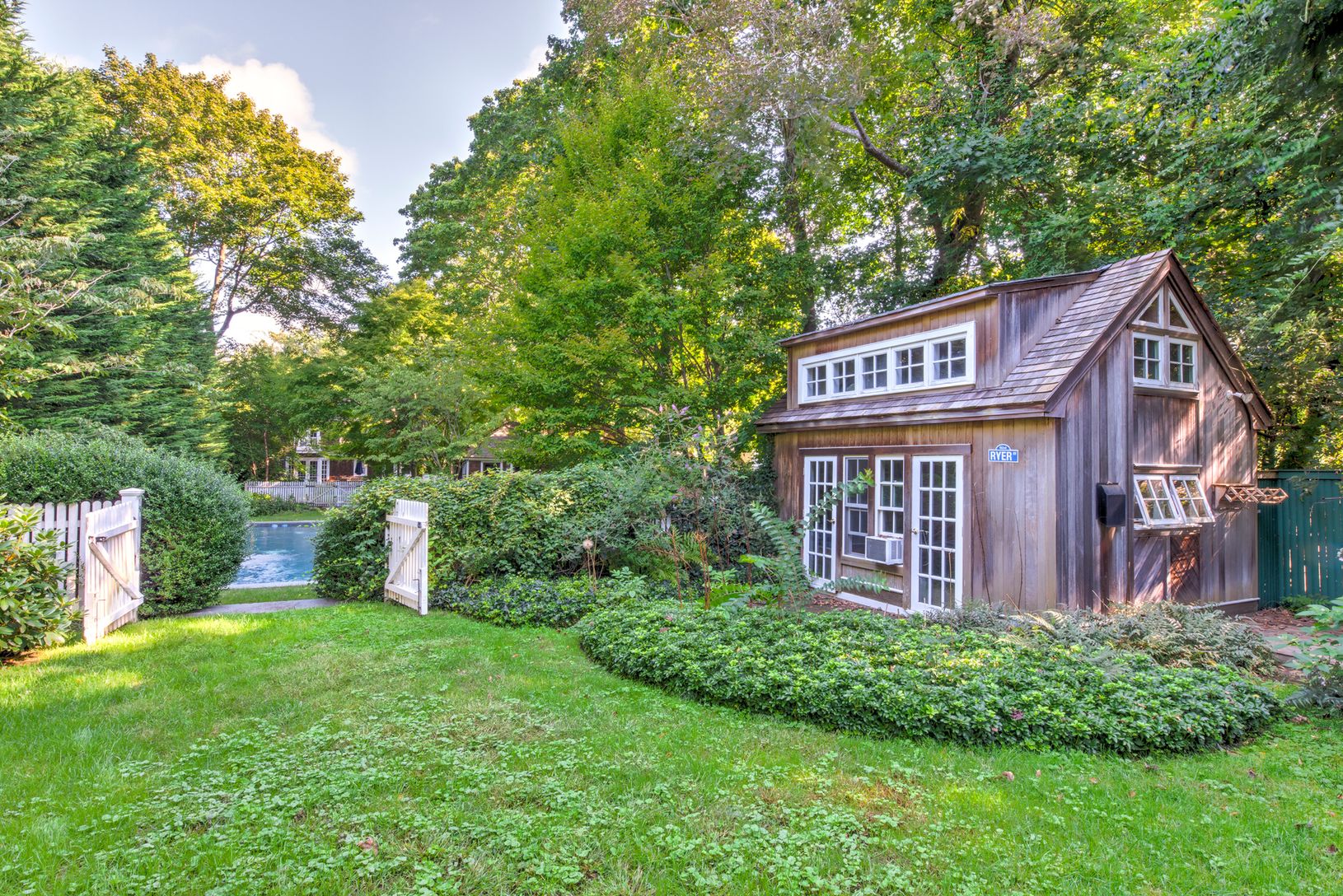 This desirable village gem offers 3 bedrooms, enclosed sunroom off of the living room, 2.5 baths, extraordinary English gardens, heated pool, outdoor shower, and 3 legal out buildings: pool house/ open air bar and 2 studio/lounge outposts. The property must be seen to be fully appreciated. A magical outdoor oasis south of the highway, with all the village amenities a stones throw away, as well as the main ocean beaches in Bridgehampton and Sag