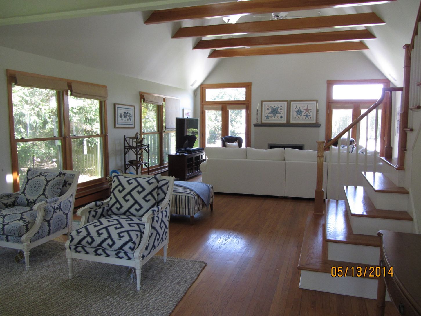 First time offered for rent. Located deep south of the highway, on the fabled Jobs Lane in Bridgehampton, set back off the road, lies this very private and wonderful home on over an acre of land has recently undergone a complete renovation. The main house features three bedrooms, three bathrooms, beautiful open chef's kitchen and great room, with the master suite upstairs. The guest house has a bedroom and bathroom, one car garage, heated scre