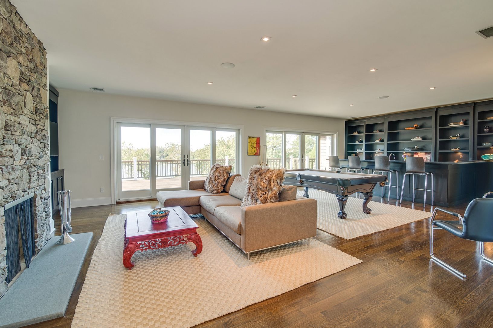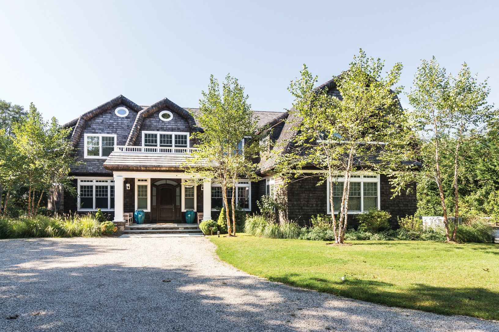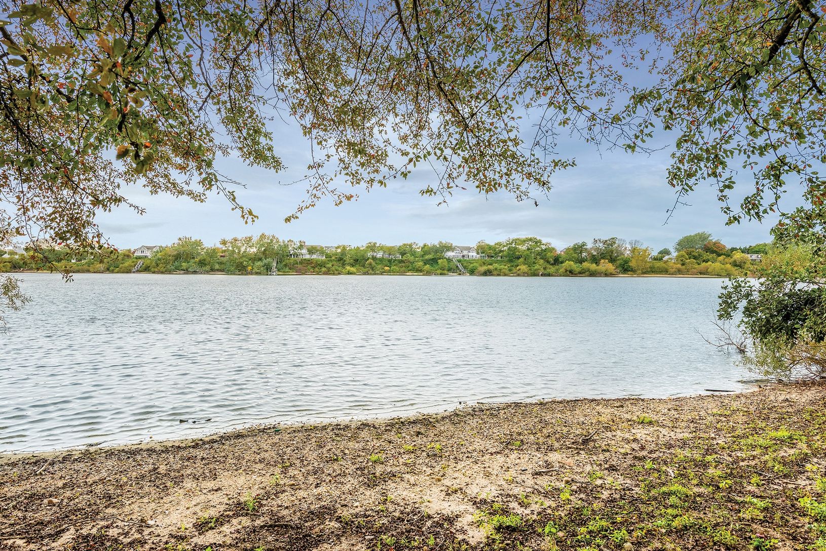 Situated on nearly 2 acres within a gated south-of-the-highway enclave, a 6,800 SF, 8+ bedroom traditional residence sits perched aside Kellis Pond, one of the Hamptons most beautiful freshwater lakes. Completed in 2014, the home's double-height foyer leads to various living areas including a bright, formal living room with fireplace, a formal dining room, adjacent butler's pantry and a custom gourmet kitchen with its own spacious den and br
