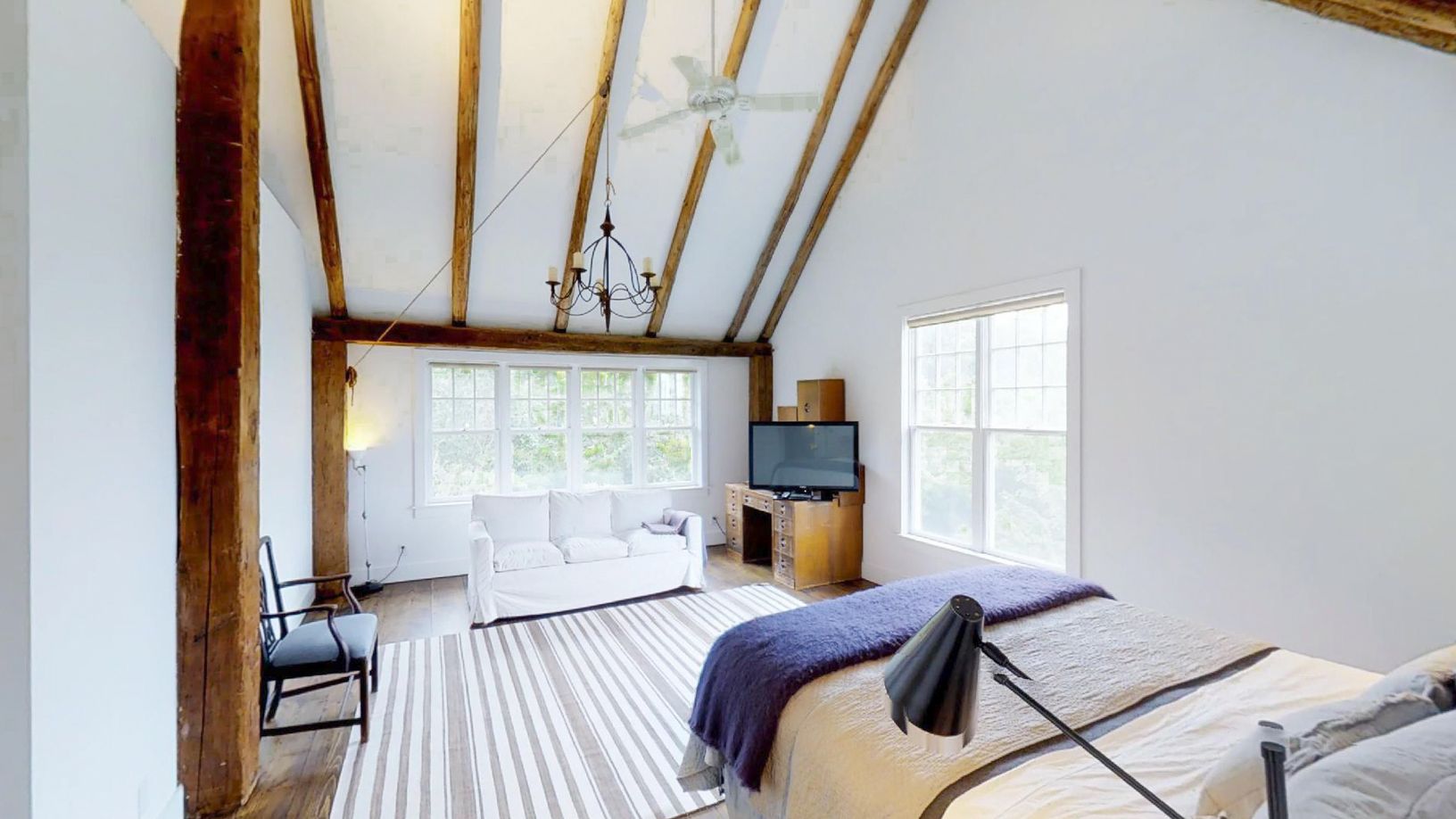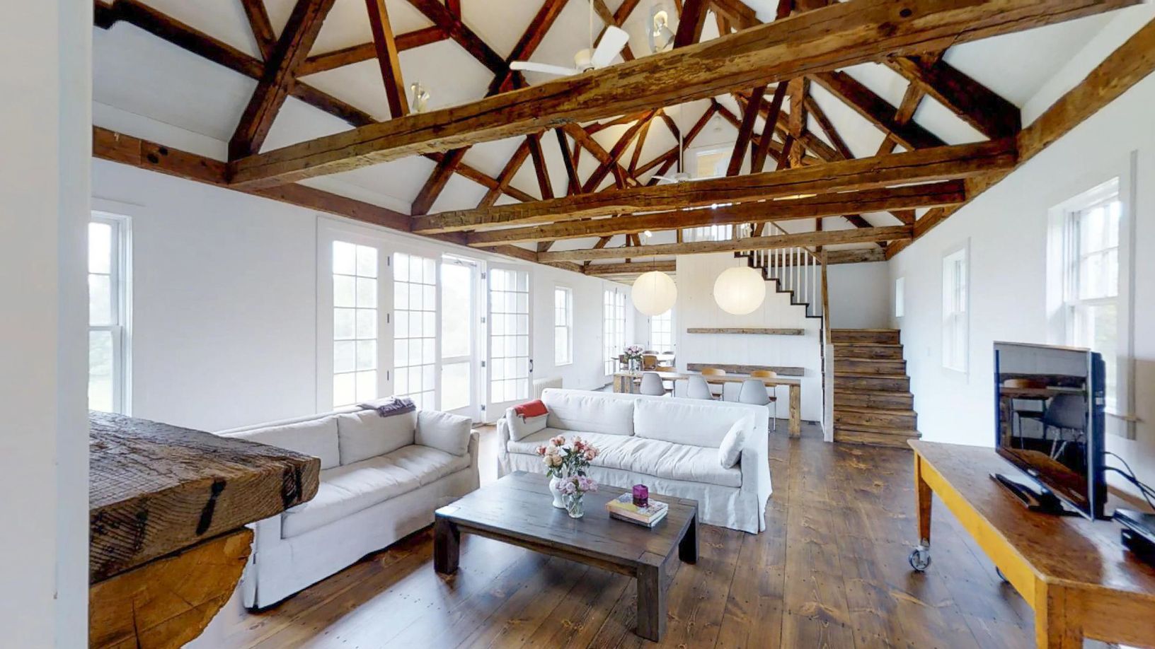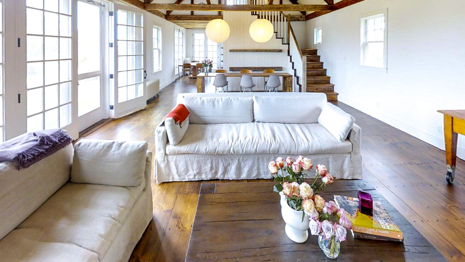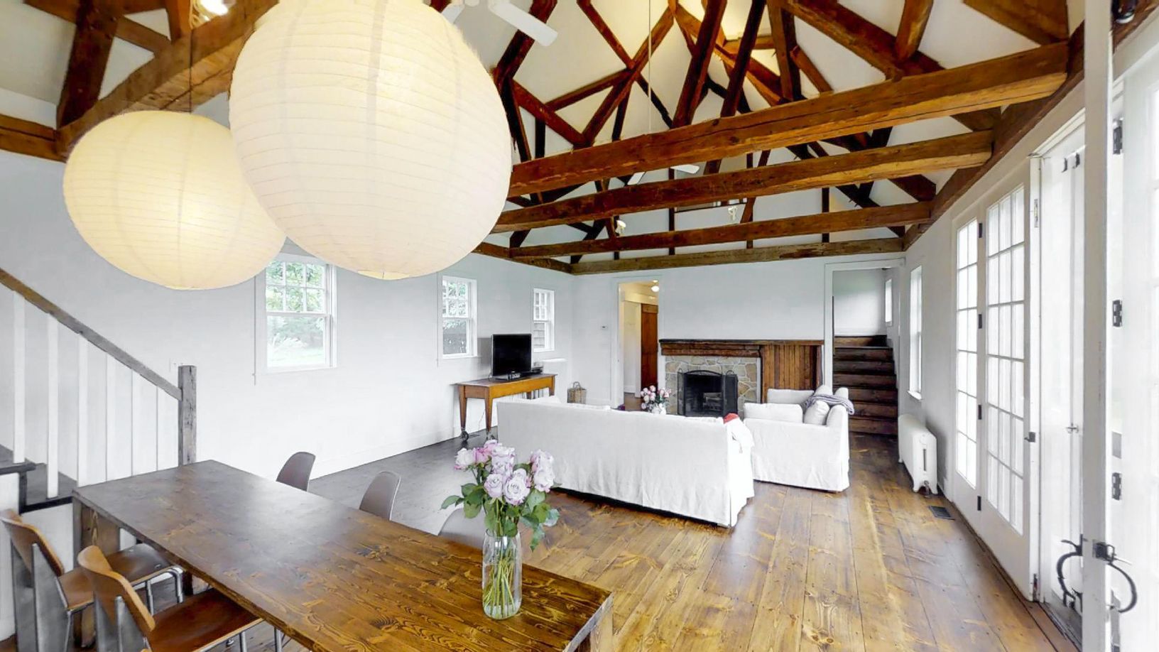 Set high atop the Ronkonkama Moraine, this understated Modern Barn/Farmhouse offers the most beautiful setting for the tenant who demands complete privacy and peacefulness. Approached by an 1,100 ft driveway, and recently renovated, the house offers 4 bedrooms with a new kitchen and attached breakfast room. There is 3500 sq. ft. of living space, 3 bathrooms, new heated gunite pool, and expansive 5+/-acre natural feeling grounds complimented