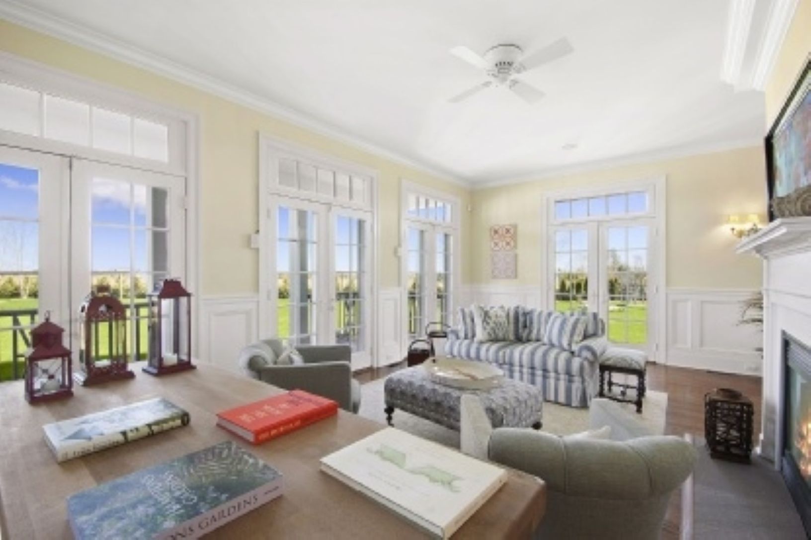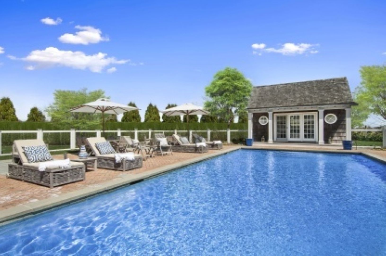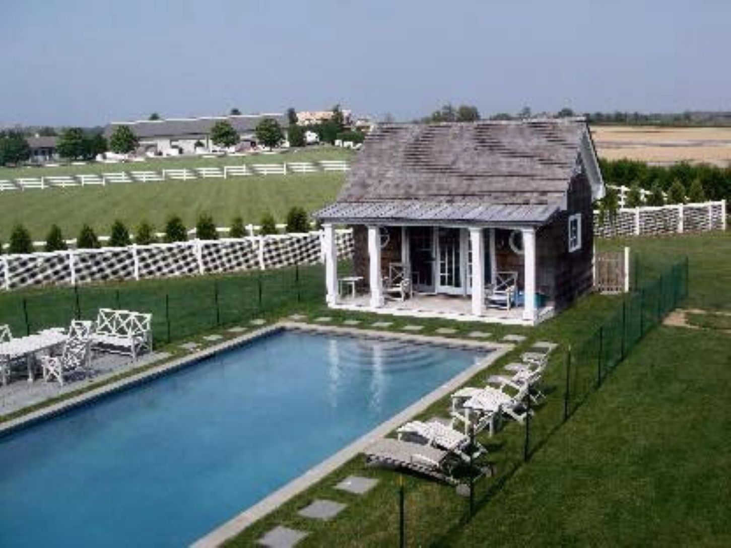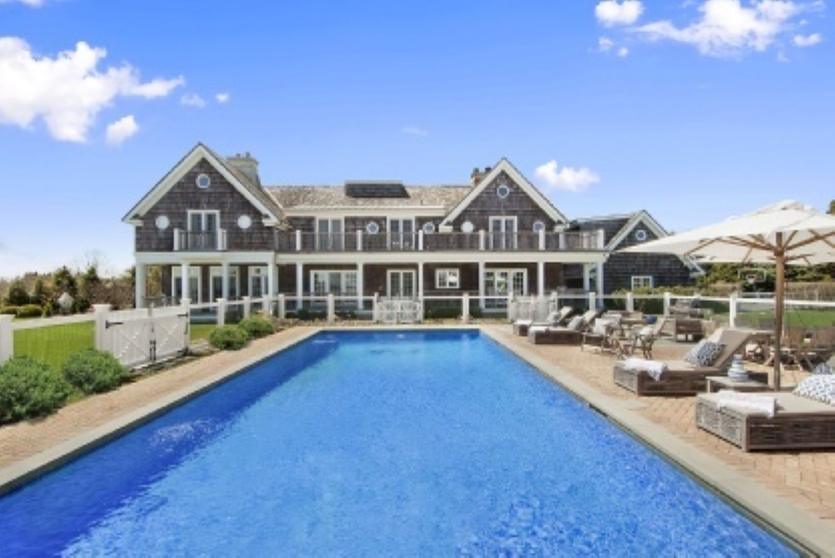 Rental Registration #: 160647 Gorgeous Post Modern 6,000 sq. ft. Bridgehampton home at the end of a cul-de-sac, overlooking a horse farm and open farm fields with views of the ocean. This 5 bedroom 5 bath home offers every amenity and is beautifully appointed. Wonderfully light-filled and open. Veranda style porches looking out to a beautiful Gunite pool and pool house and gorgeous gardens. A perfect get-away for the month of August..